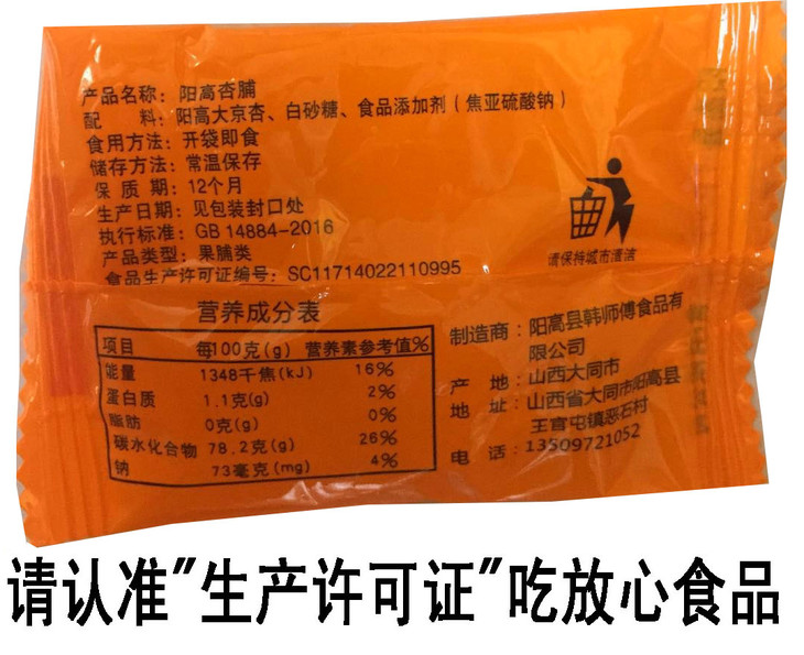 山西特产大泉山阳高杏脯独立包装200克
