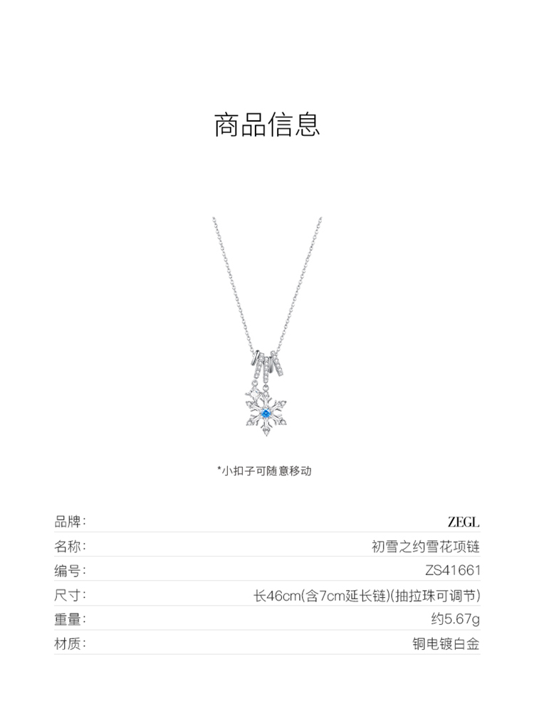 ZEGL设计师初雪之约系列雪花项链女生2023新款轻奢小众秋冬锁骨链