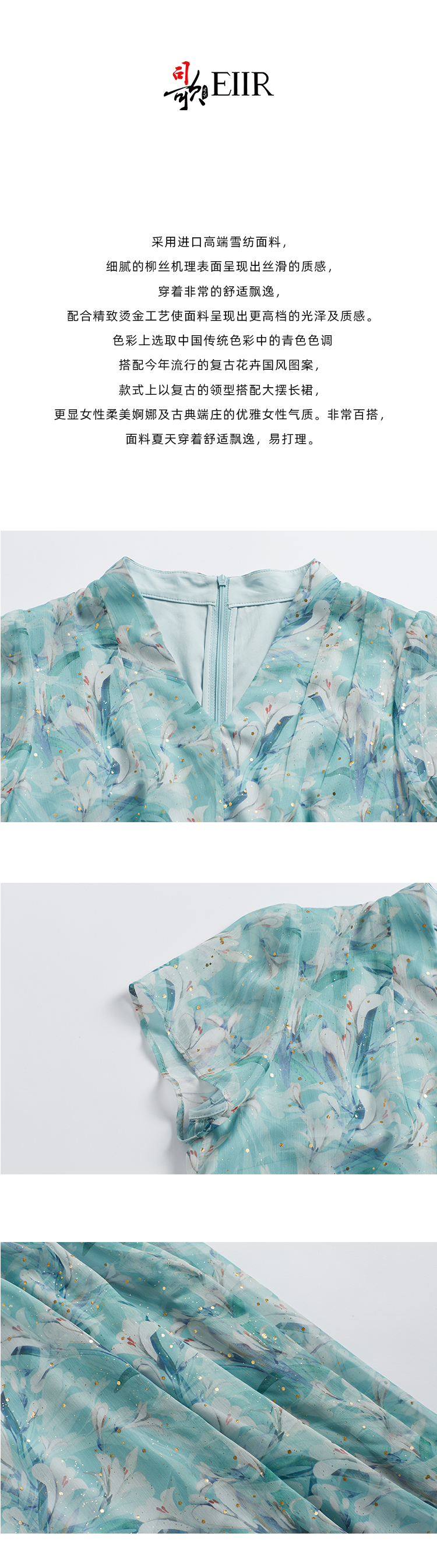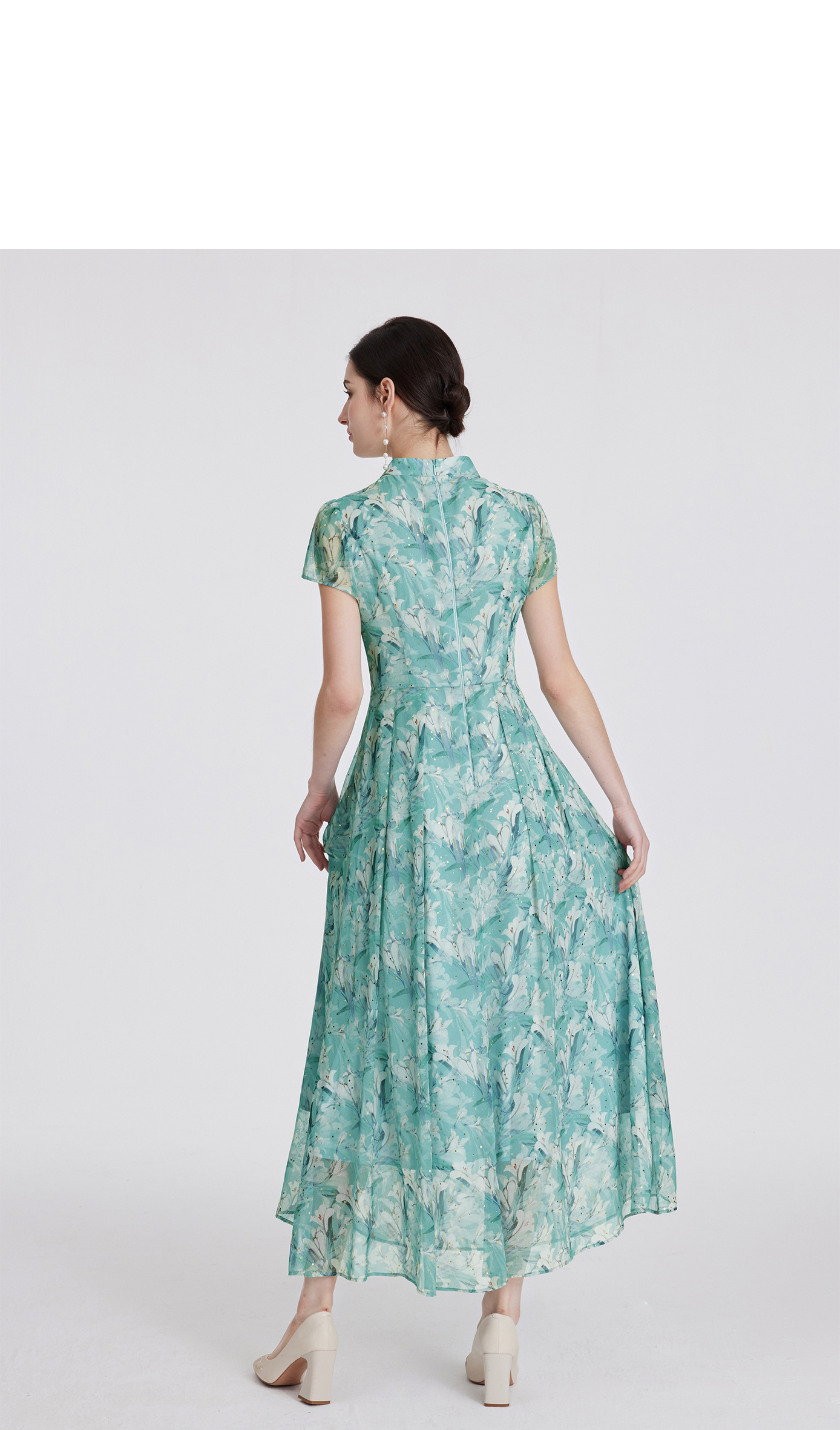 司歌印花雪纺连衣裙中式优雅中袖A891194X