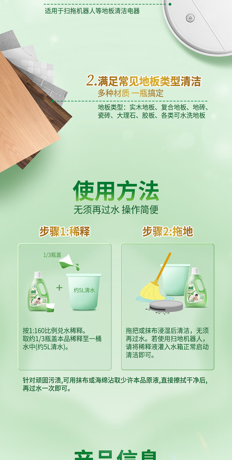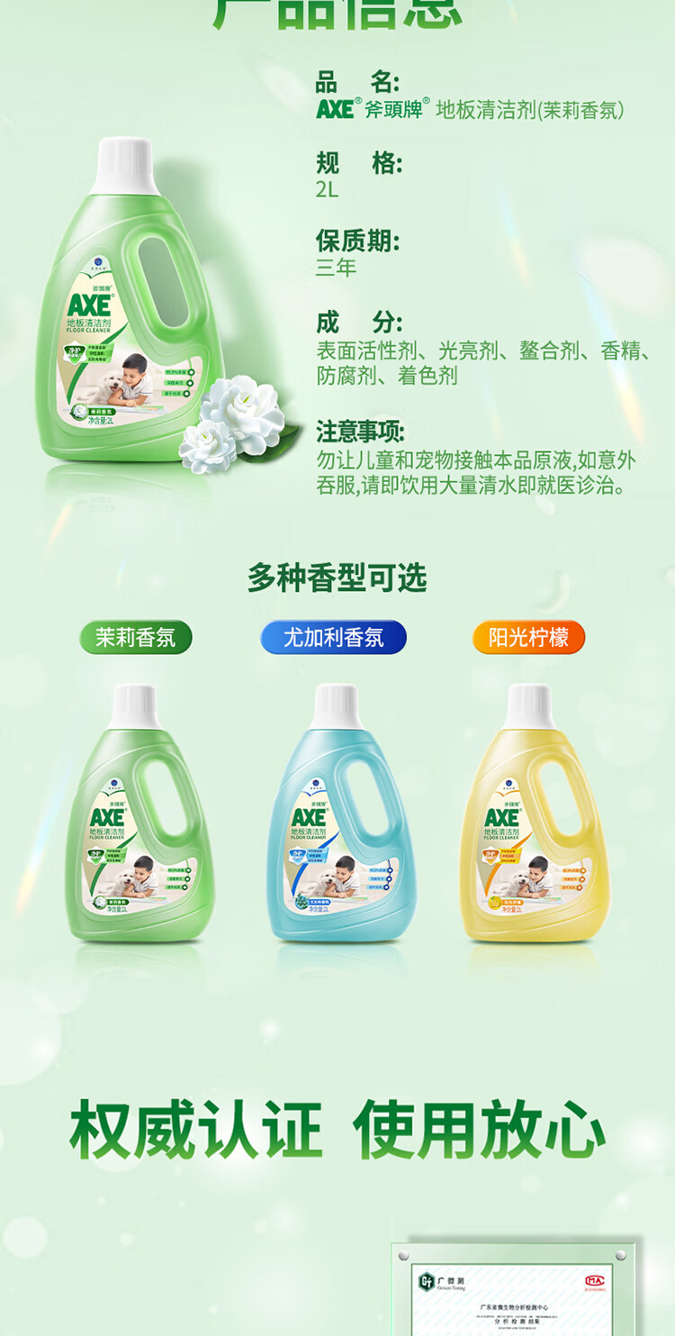 【分仓直发包邮】AXE斧头地板清洁剂(茉莉清香)2L