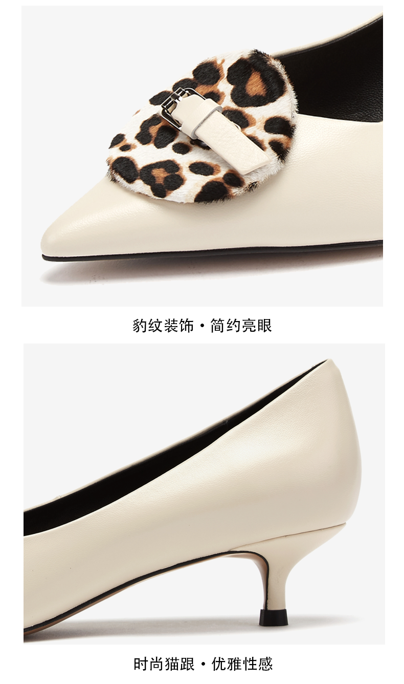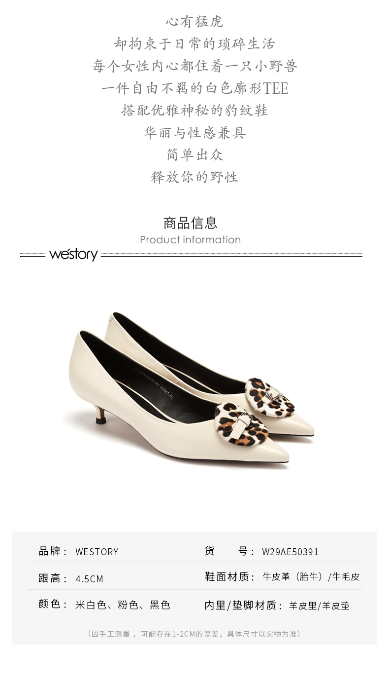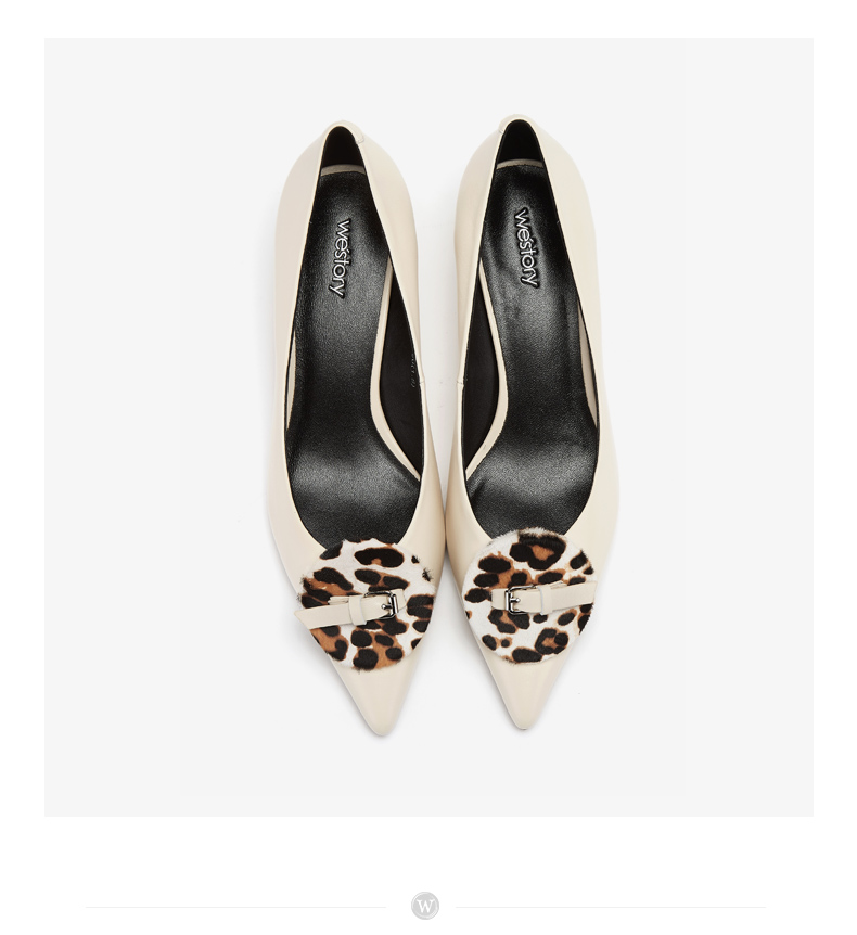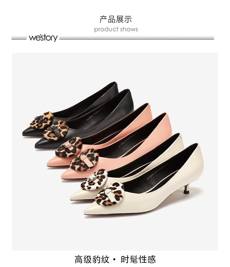 westory商场同款春夏豹纹饰扣浅口单鞋女纯色中跟尖头女鞋W29AE50391