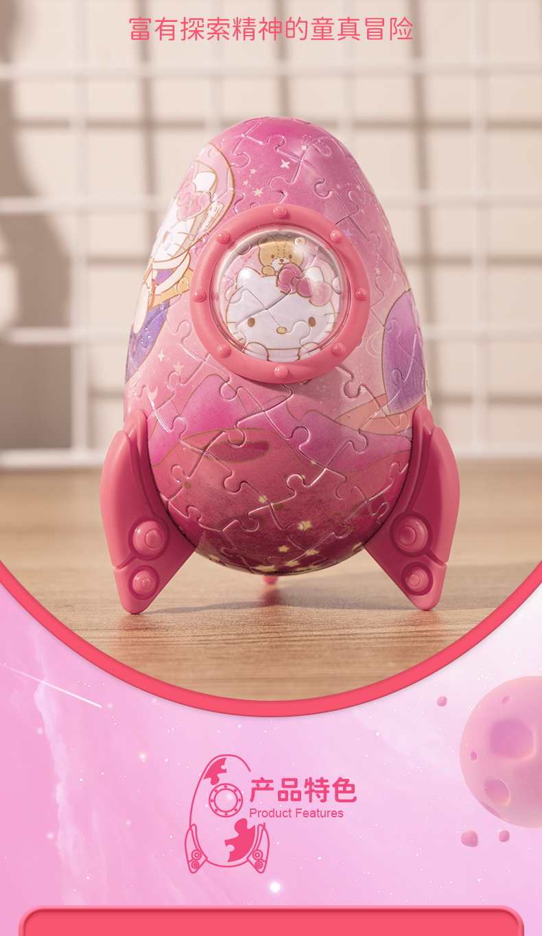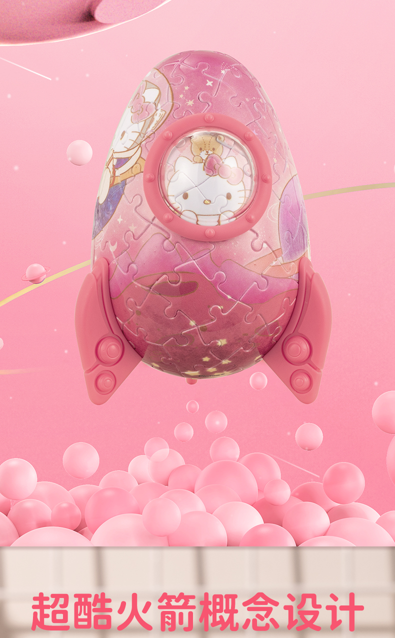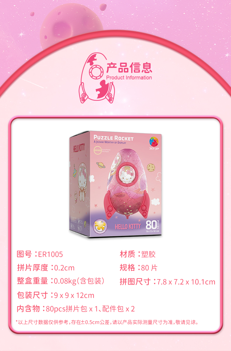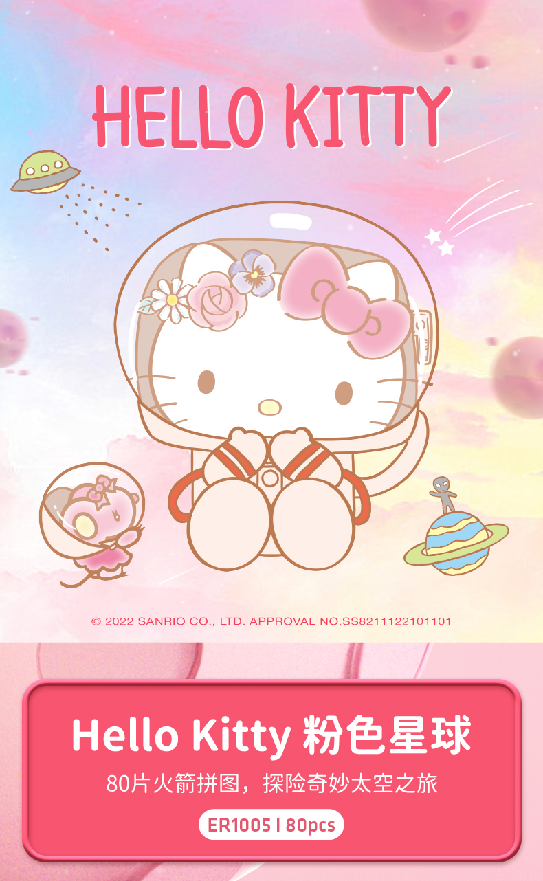 【折扣商品 不退不换】80片 火箭塑料拼图 ER1005 Hello Kitty 粉色星球
