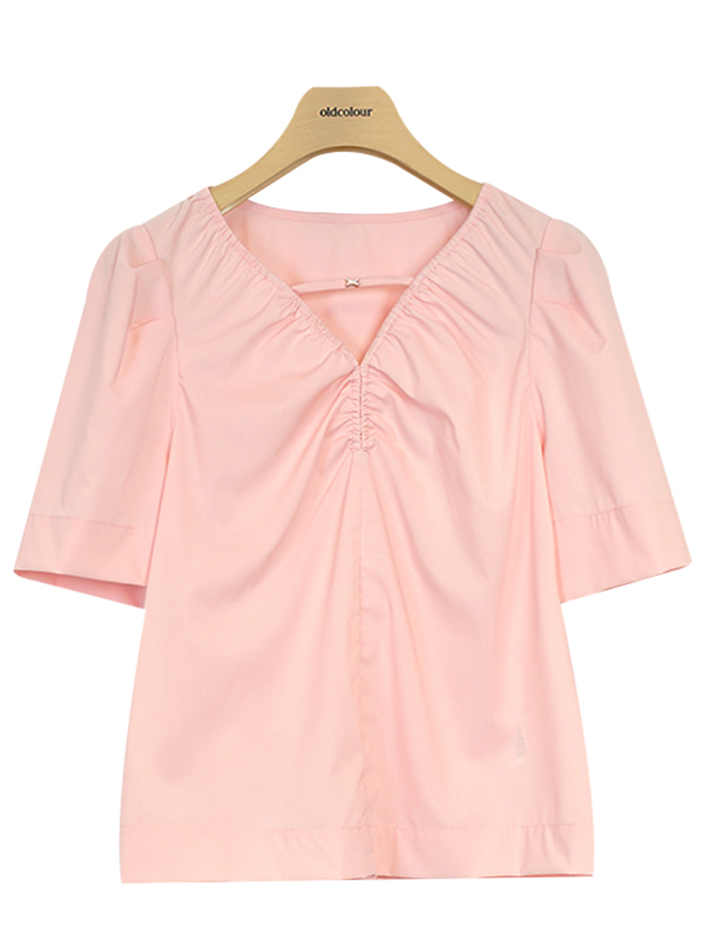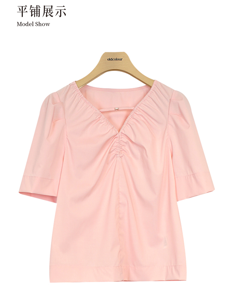 oldcolour夏季新款法式抽褶V领衬衫女设计感宽松显瘦P22011294