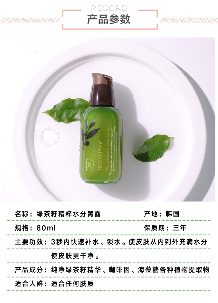 Innisfree悦诗风吟绿茶籽精萃水分精华露保湿补水三秒小绿瓶80ml
