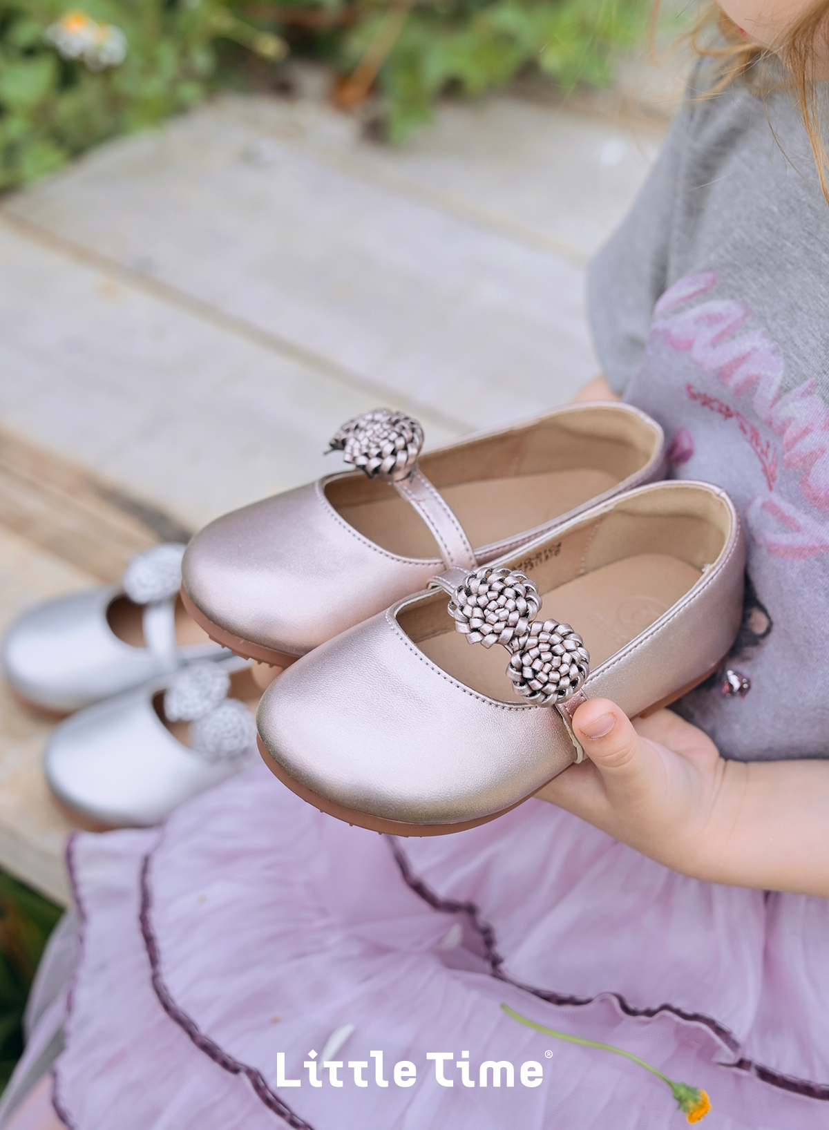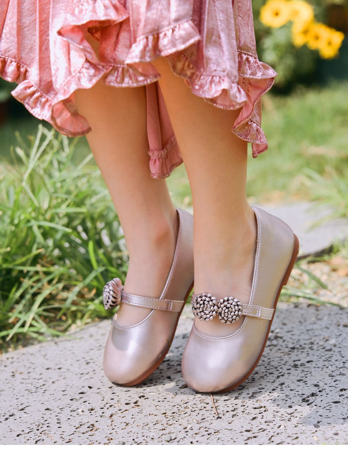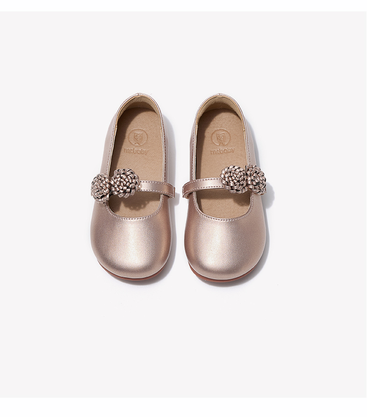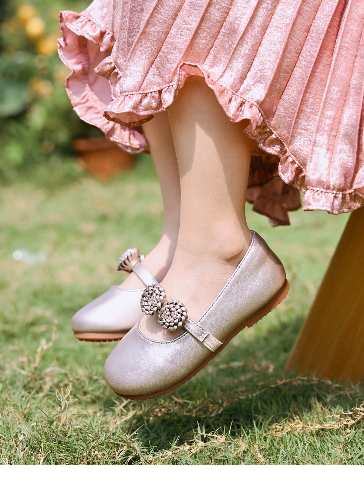 Little time女童皮鞋2025春季新款儿童洋气时尚手工花朵公主鞋
