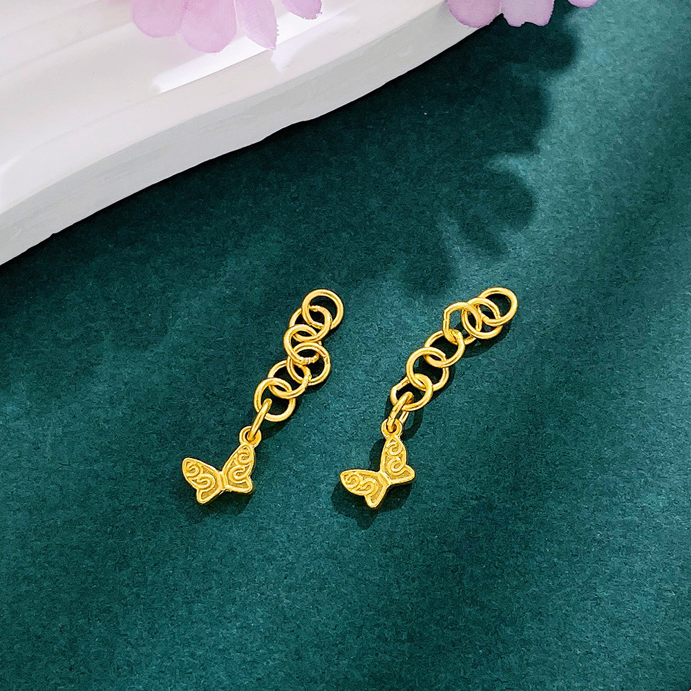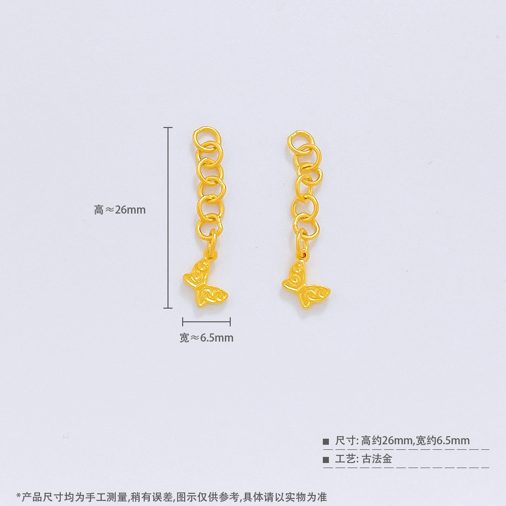 【限时克减150元】足金999 #九紫离火 (两件均有成色字印)古法实心蝴蝶吊饰调节尾链加长链Diy手串配件/2件(AKGFSC00632)(预售产品下单后不退款不退货不换货不补差价)