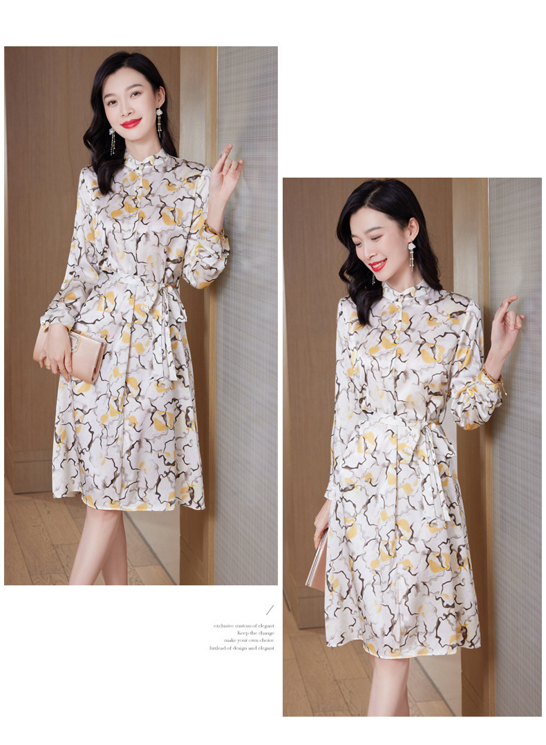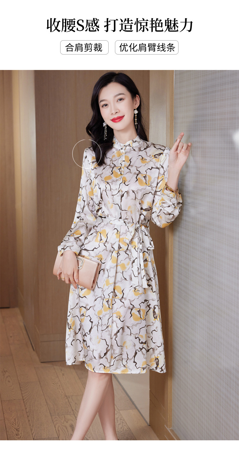 水墨花真丝连衣裙,长袖宽松大码裙ASE-9512