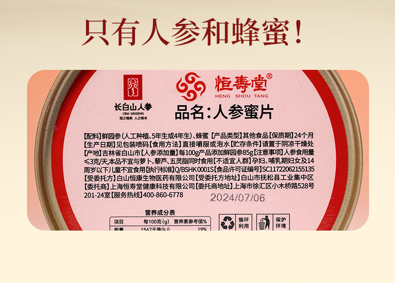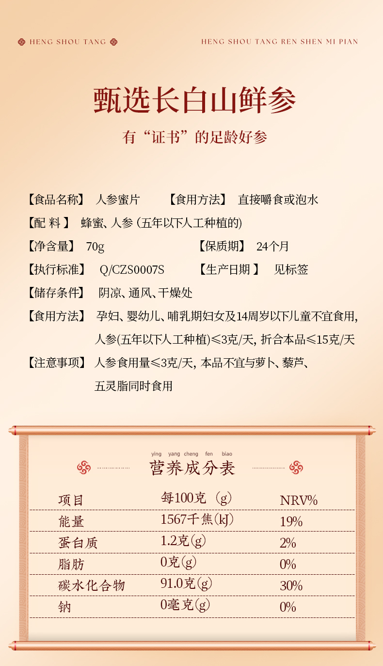 【女神节】恒寿堂 长白山1.8cm人参蜜片 70g*2/70g*4
