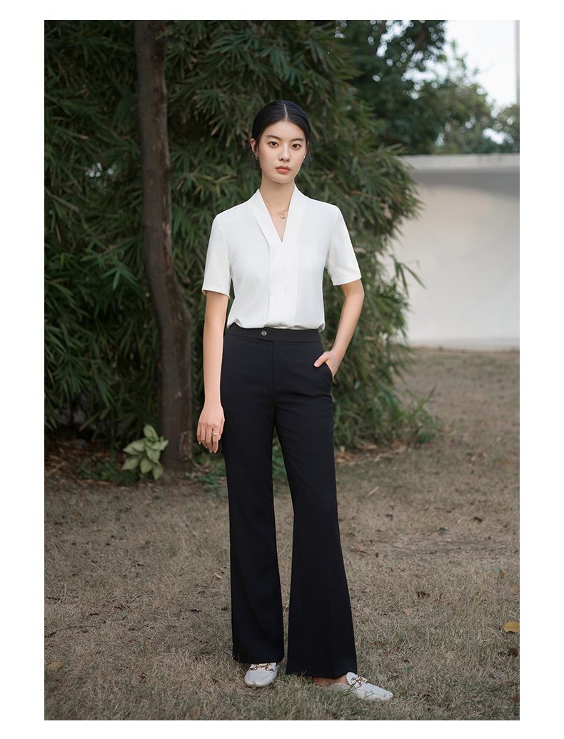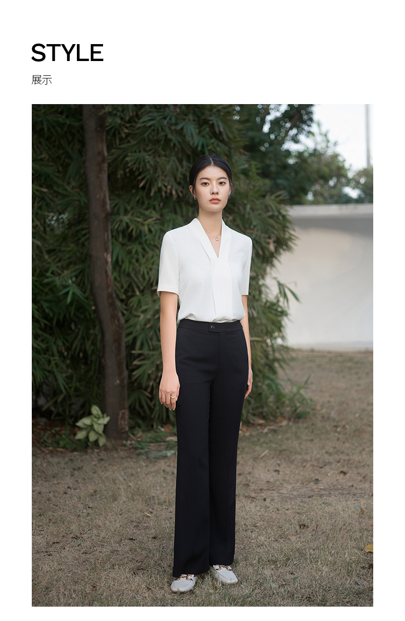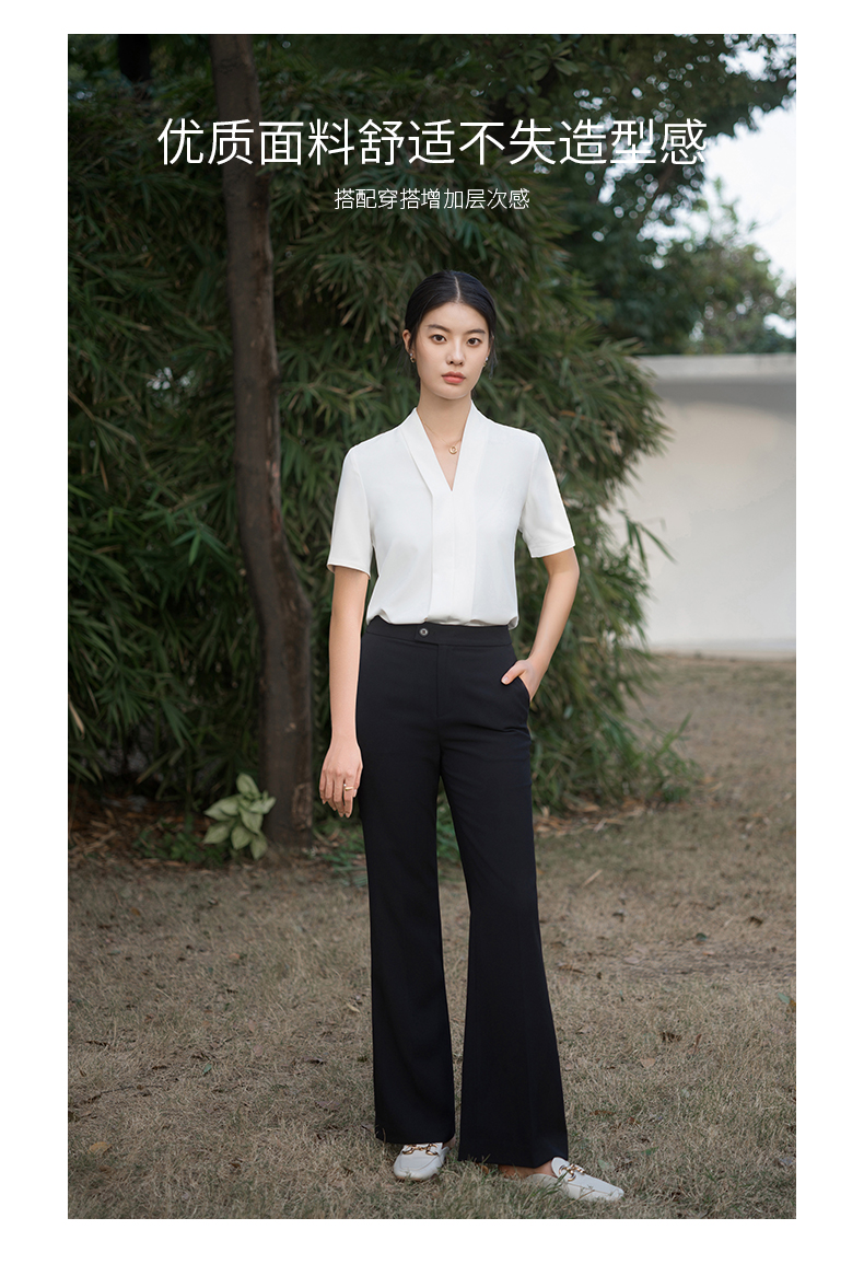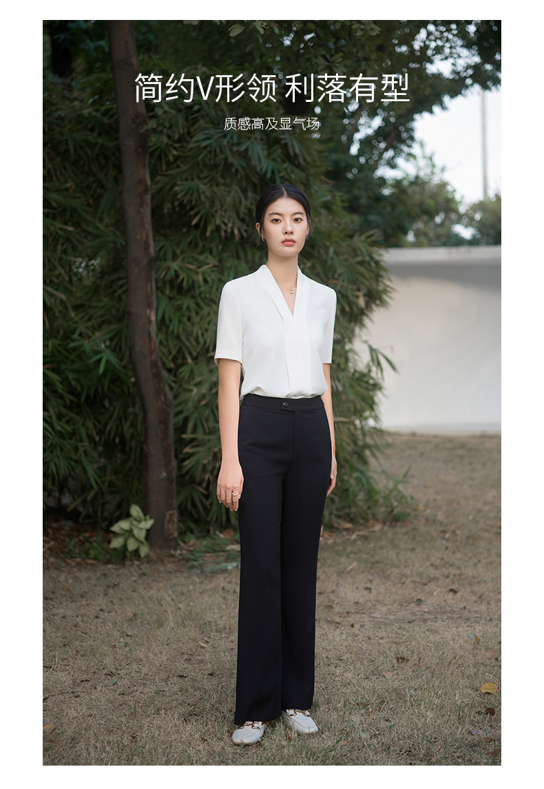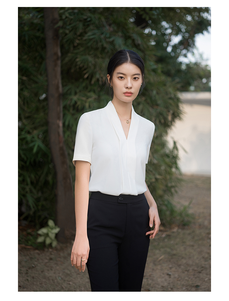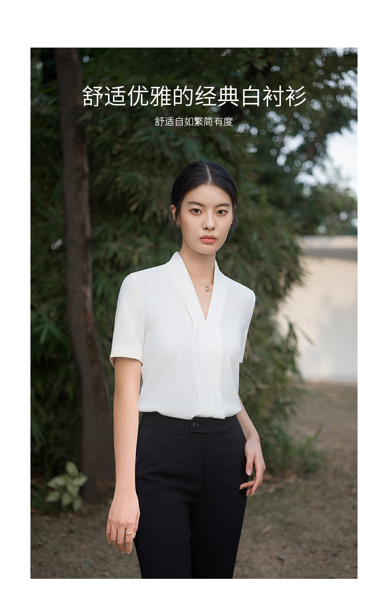 IWY/白色短袖衬衫v领配西装百搭内搭修身显瘦职业装衬衣不透遮肉ol B11221