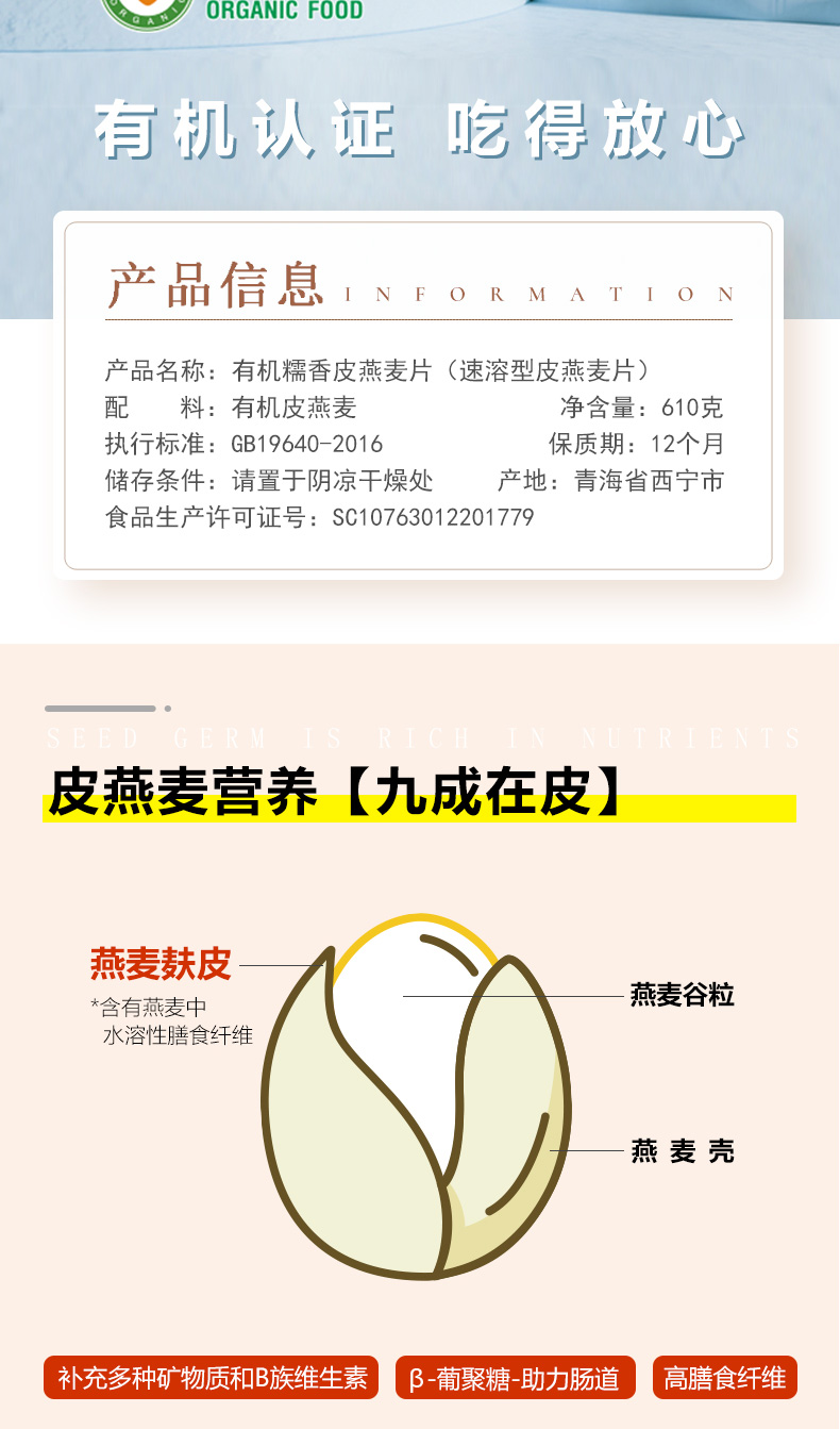 有机皮燕麦 610g 推荐人群:减肥、健身人群