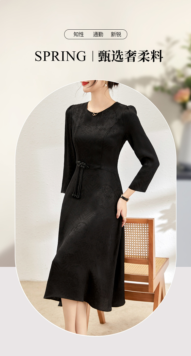 简约大气新国风,提花气质盘扣设计连衣裙WLZD-2401808