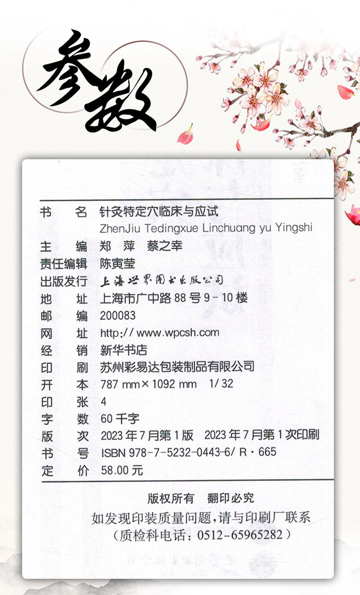 特定穴在腧穴学穴位中的占比非常高,也是临床中常用的穴位。本书收录了包括五输穴、背俞穴、募穴、郄穴、络穴、八会穴等针灸经络中的特定穴位,以歌诀的形式,帮助针灸的初学者更好更快地背诵记忆纷繁庞杂的穴位。通过歌诀的背诵,达到入门容易,记忆深刻,不易遗忘的目的。 书中列出了穴位的位置、操作,总结了部分穴位的临床应用,并收录了全国执业医师考试的历年真题,从书本到考试到临床,全面帮助中医专业在校学生及针灸爱好者零基础入门学习针灸穴位,是一本的针灸经络学习手边书。