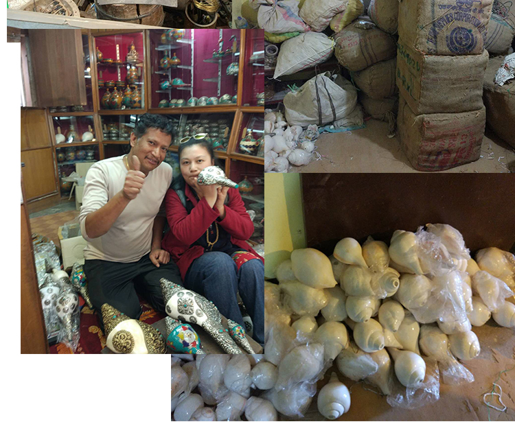印度白海螺尼泊尔手工包铜雕花镶嵌宝石八吉祥八供法螺17cm