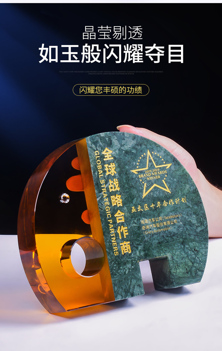 万象更新大理石水晶奖牌定制定做企业代理加盟牌匾授权牌刻字制作