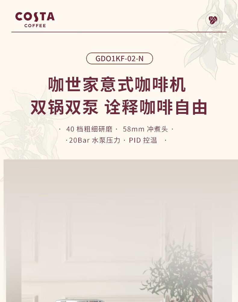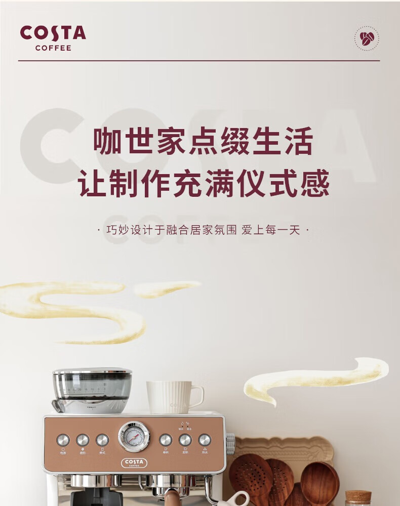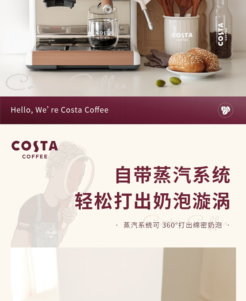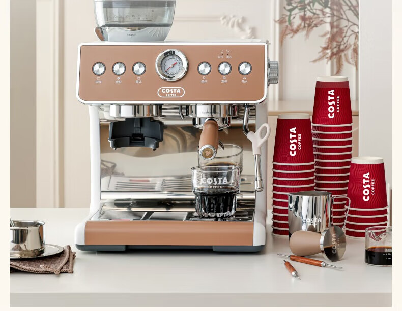 COSTA家用咖啡机半自动咖啡机调奶器双锅双泵咖啡机全自动研磨一体机