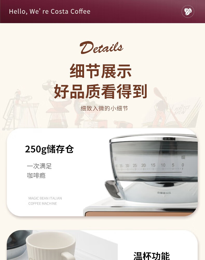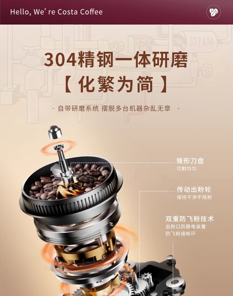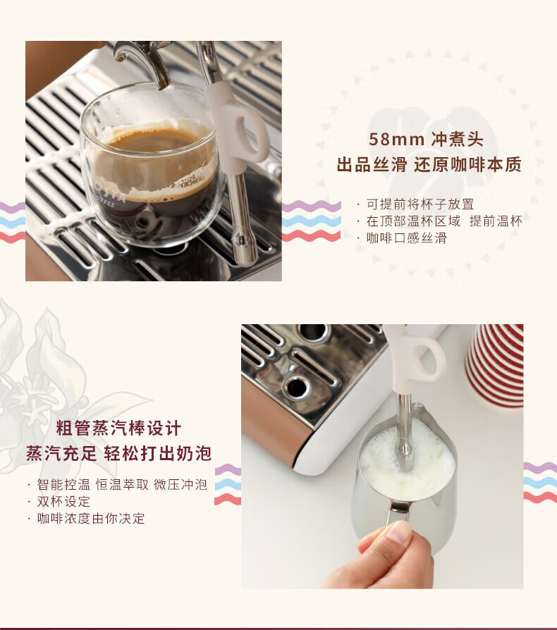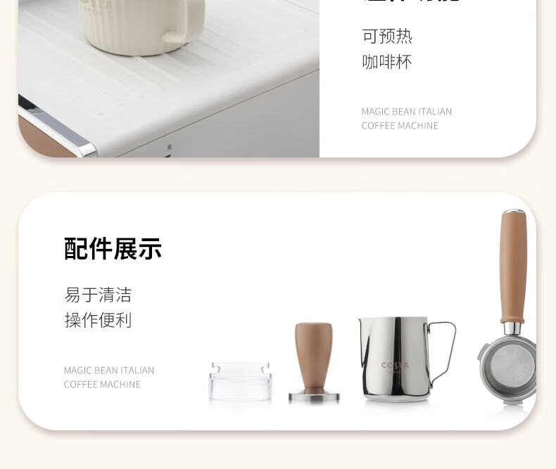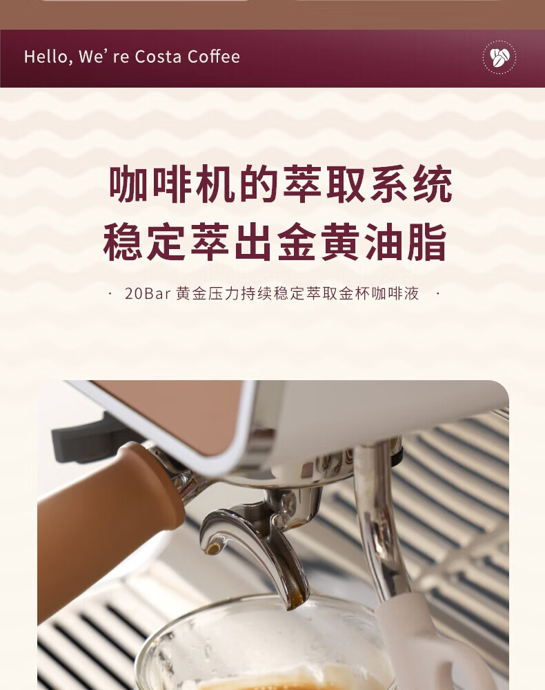 COSTA家用咖啡机半自动咖啡机调奶器双锅双泵咖啡机全自动研磨一体机