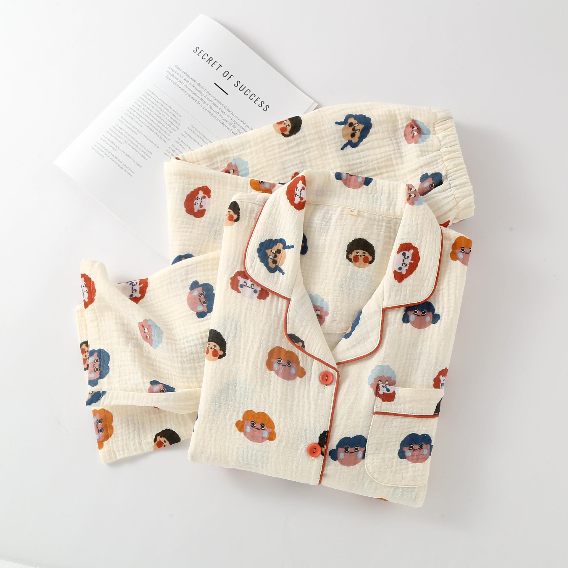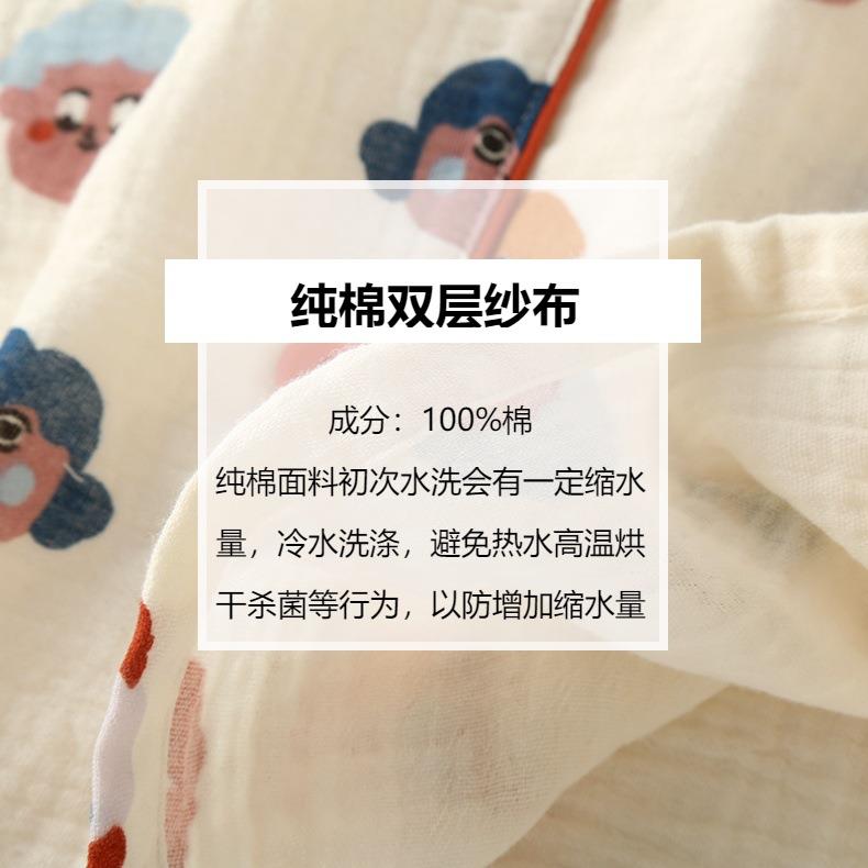 新款可爱卡通双层纱布纯棉女睡衣春秋夏季薄款长袖全棉家居服套装