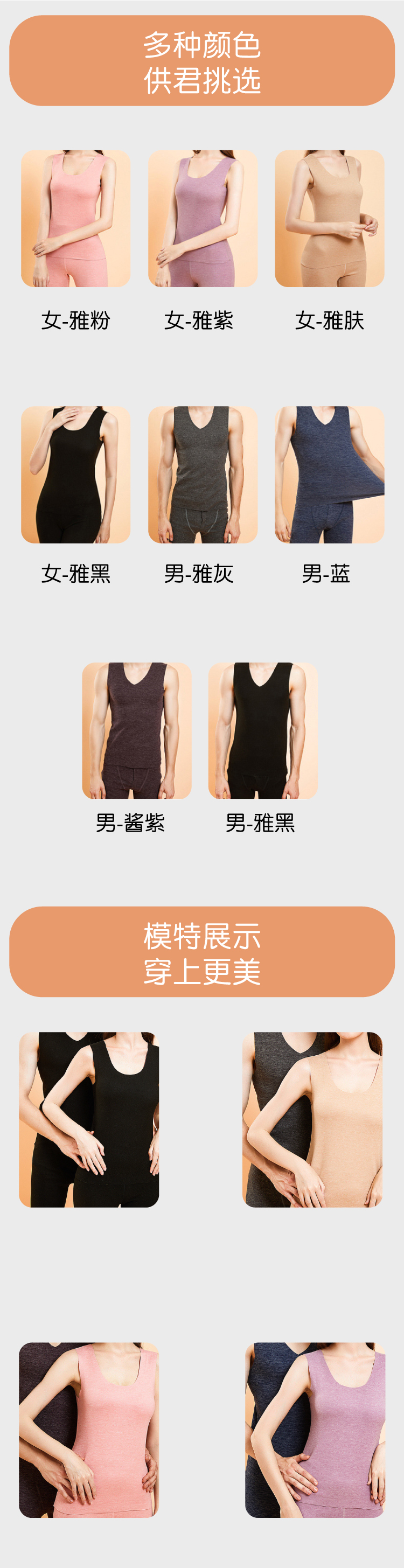 【清仓】桃内2023新款 秋冬保暖背心 舒适亲肤 文案舒适 有桃内就够!秋冬羊绒蚕丝保暖背心新款女修身圆领打底衫上衣男士无袖马甲坎肩 yrbx-19