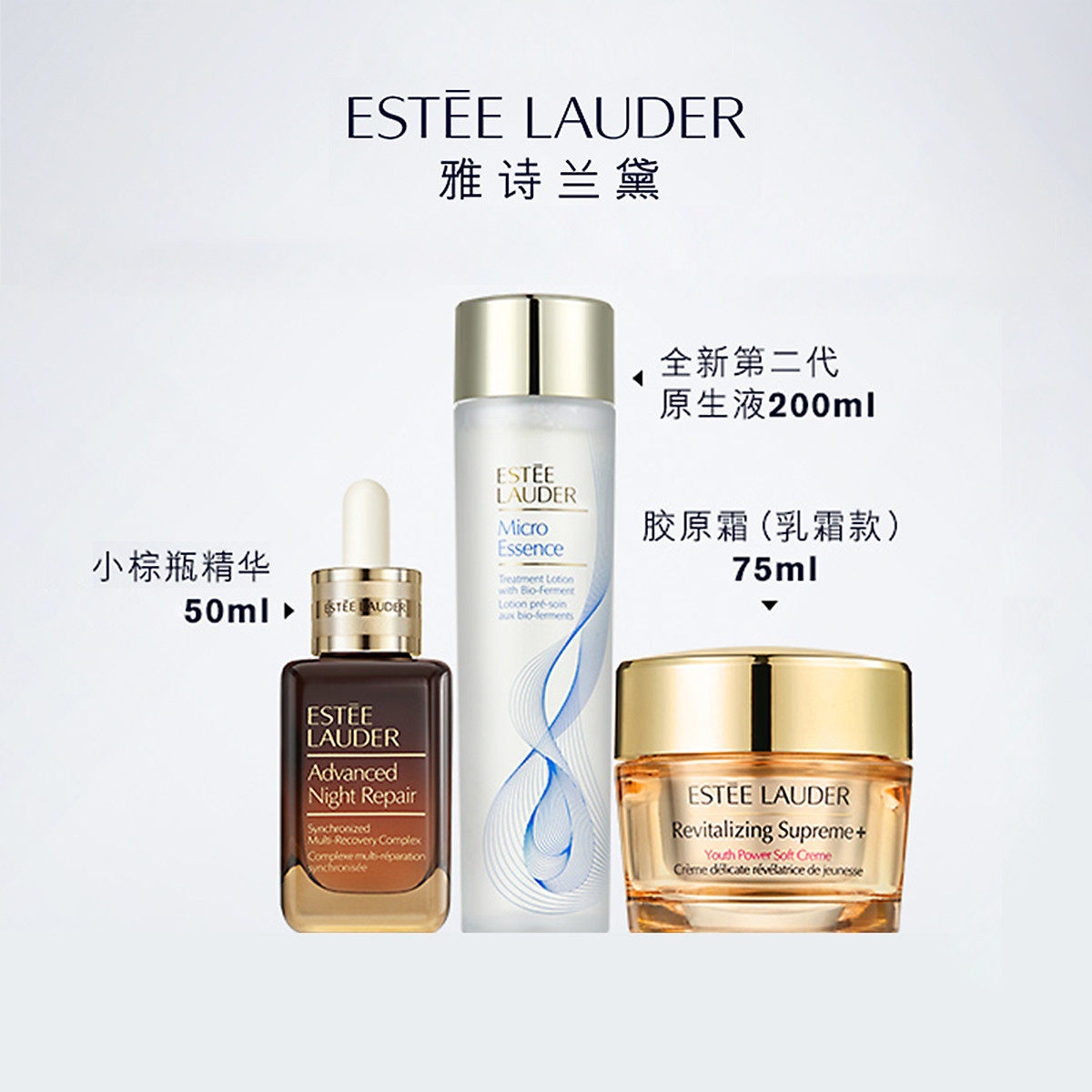 【38女神节送礼赠礼袋】Estee Lauder雅诗兰黛明星修护三件套「内含:小棕瓶精华50ml+经典原生液200ml+智妍面霜75ml」