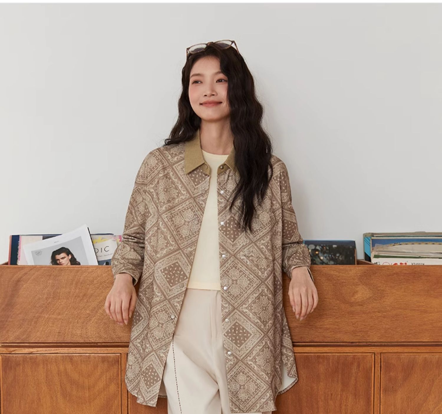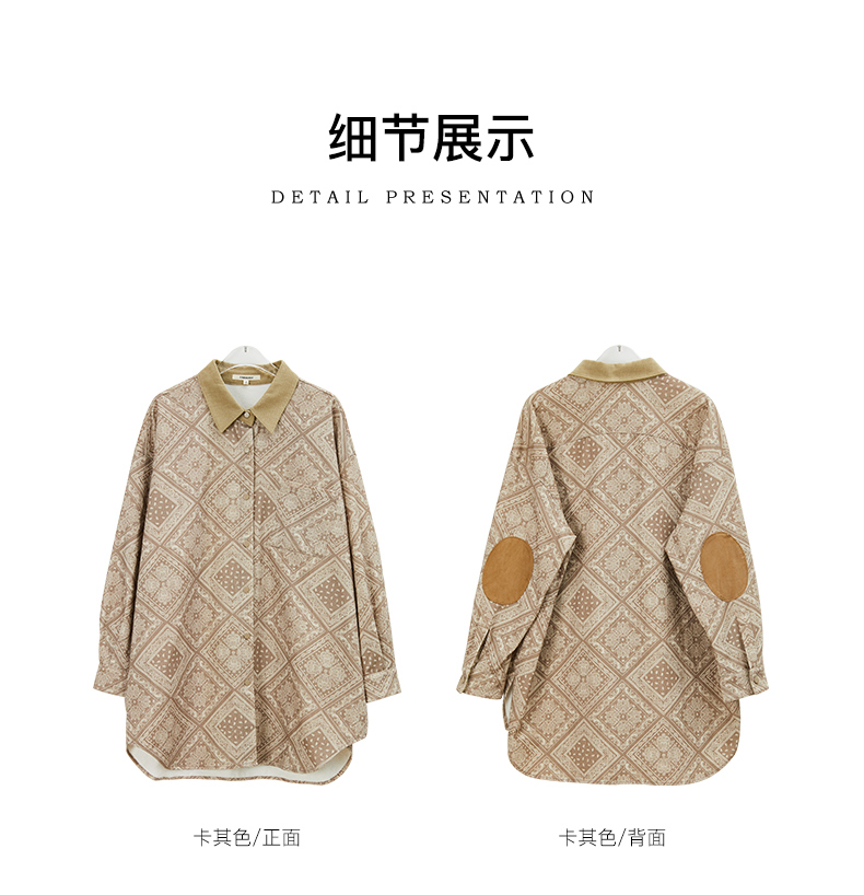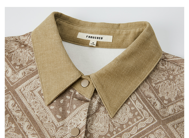 Famecoco原创棉质拼接衬衫潮流印花休闲衬衣春款FAB6BH012