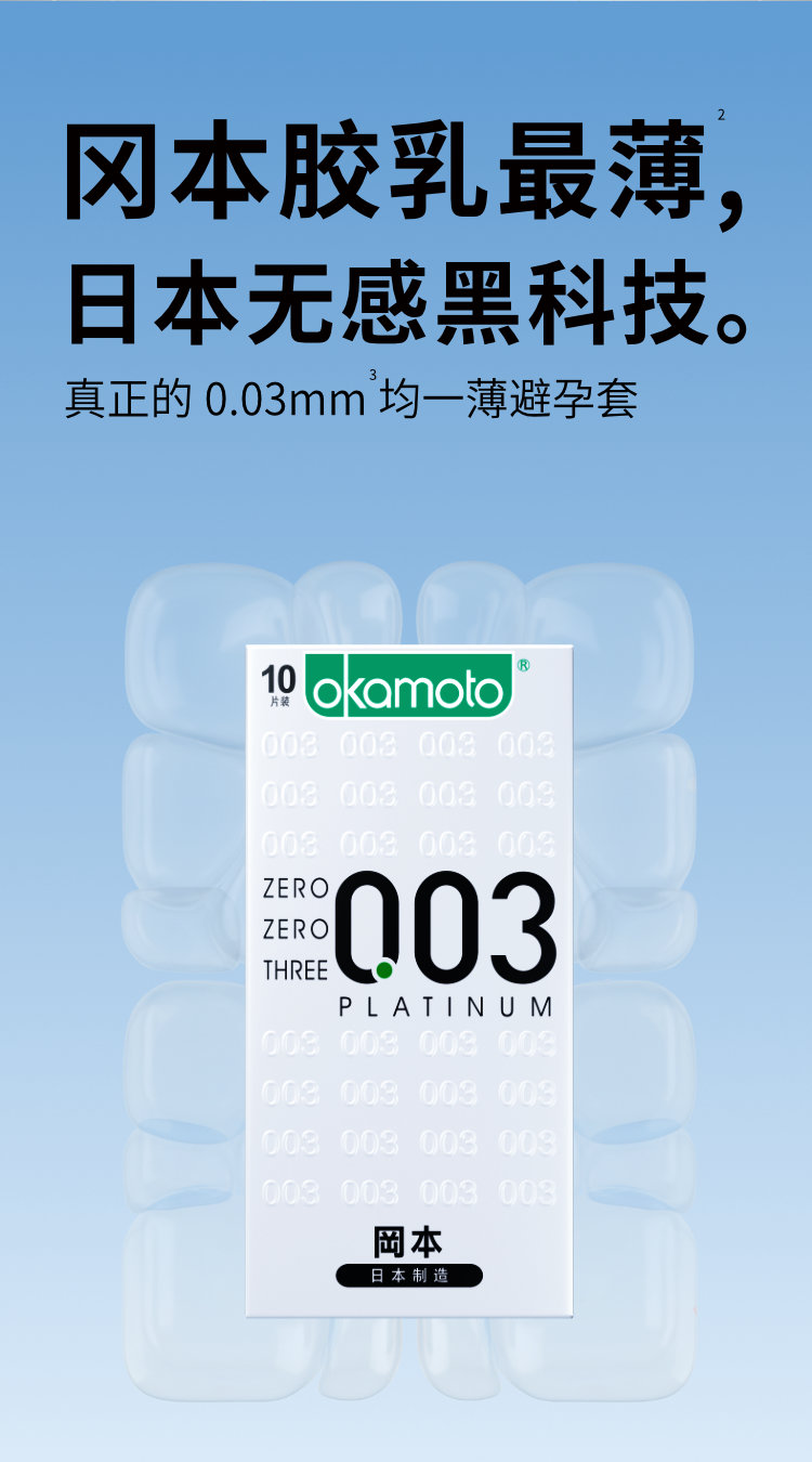 冈本 避孕套安全套 003白金超薄10片装男女用套套计生情趣成人用品