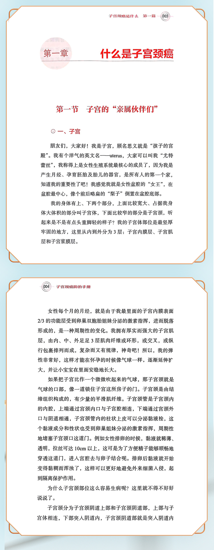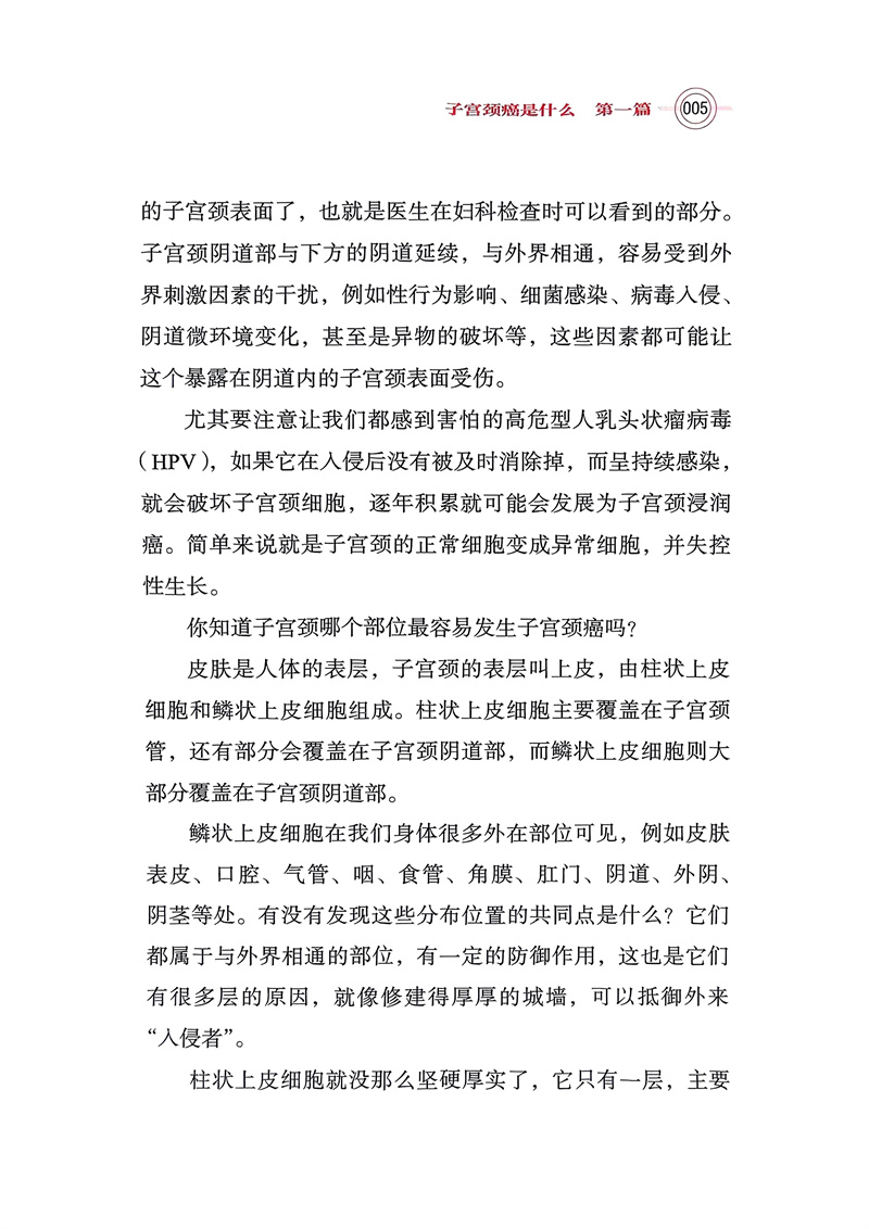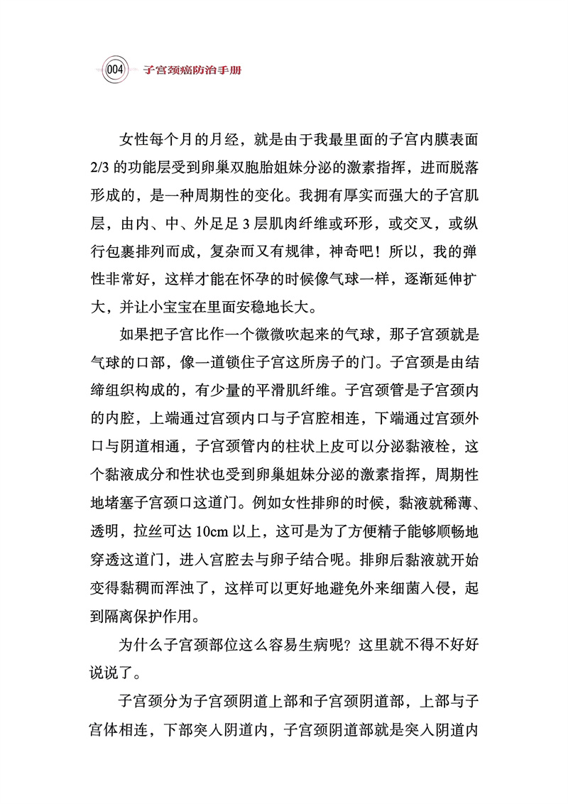 本书以拟人化的写法,将子宫颈癌的病因、预防、治疗、康复等知识用问答的形式写出,并配有适量漫画。本书作者权威,写法通俗,四色印刷,是一本较好的子宫颈癌防治科普图书。