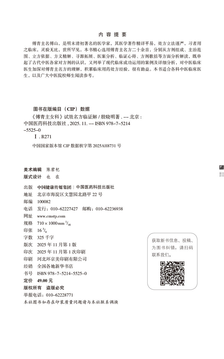 傅青主女科 试效名方临证解(大国医试效名方临证解书系)殷晓明 适合各科中医临床医生中医院校师生阅读参考 中国医药科技出版社