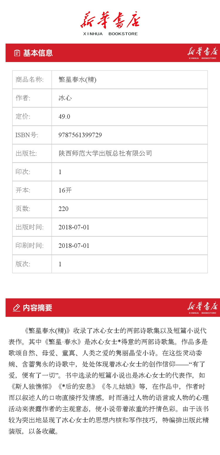 【新华书店旗舰店官网】 先锋经典文库 繁星春水 精装典藏 世界经典文学名著 10-14岁小学生课外读物注解书冰心的书籍 新华先锋