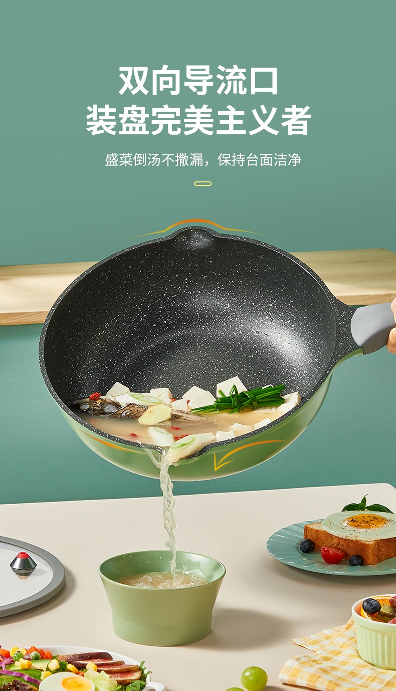 炊大皇不粘锅30cm竹青石超轻锅CG30ZQ-1