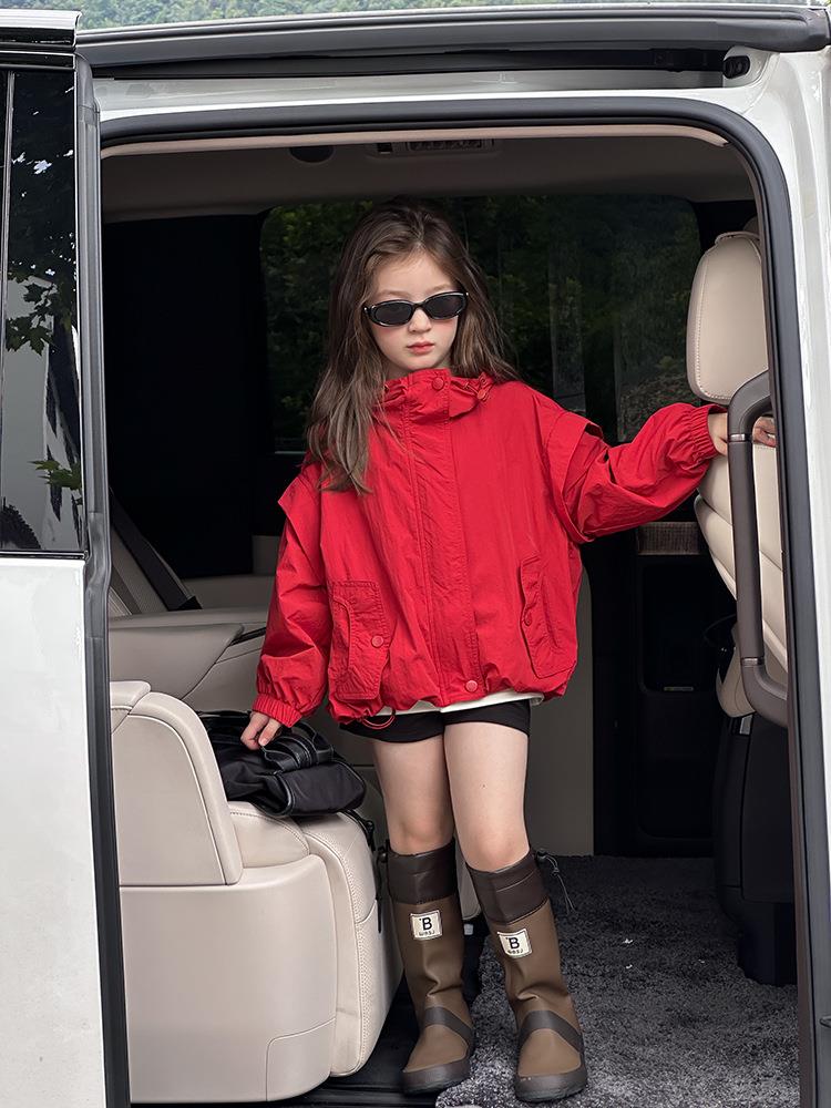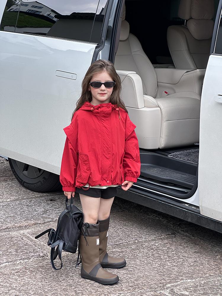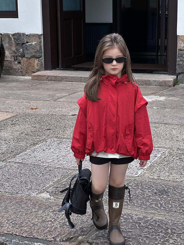艾摩贝贝儿童韩范设计感户外冲锋衣男女童宝宝宽松冲锋衣休闲外套