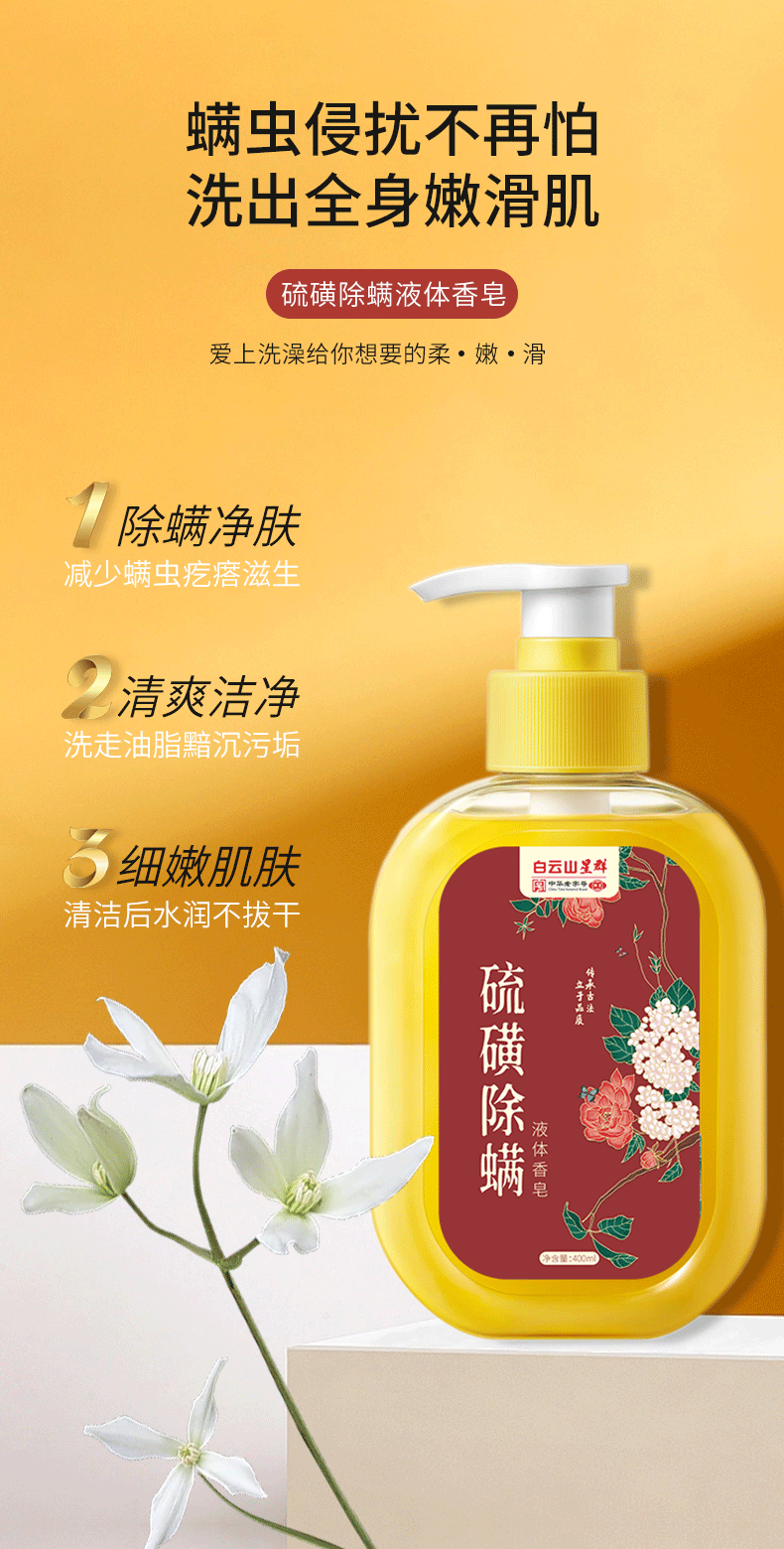 【广药白云山除螨沐浴露】液体香皂 深层清洁祛痘去螨虫 硫磺沐浴露