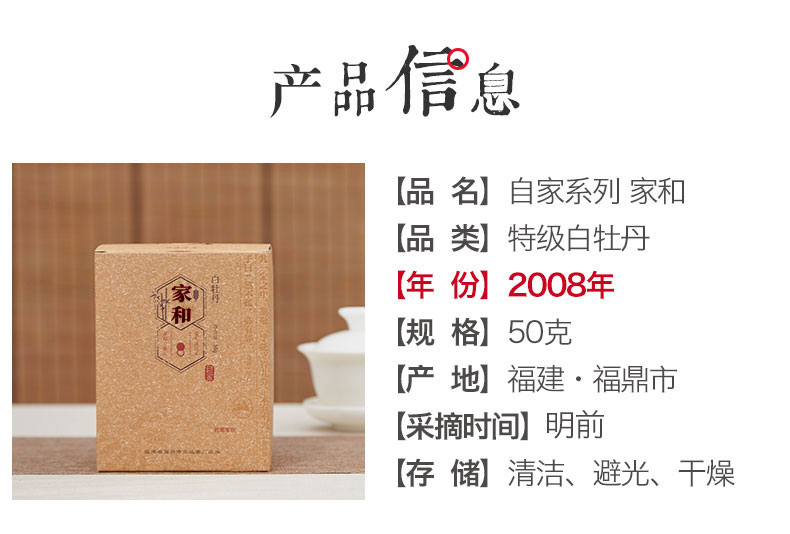 自家系列丨2008年 白牡丹 家和 特级 50g盒