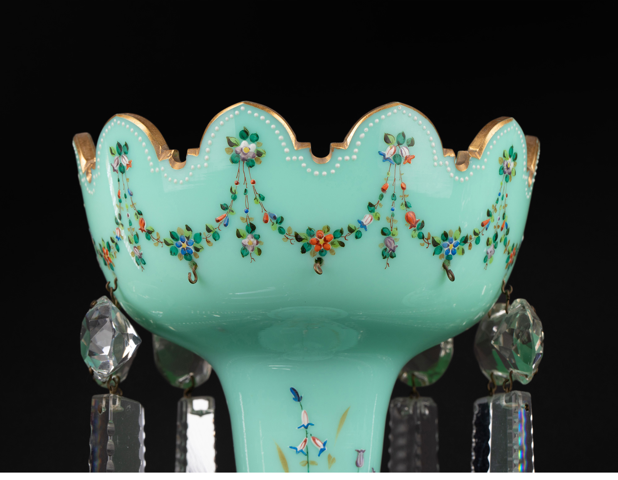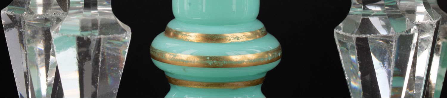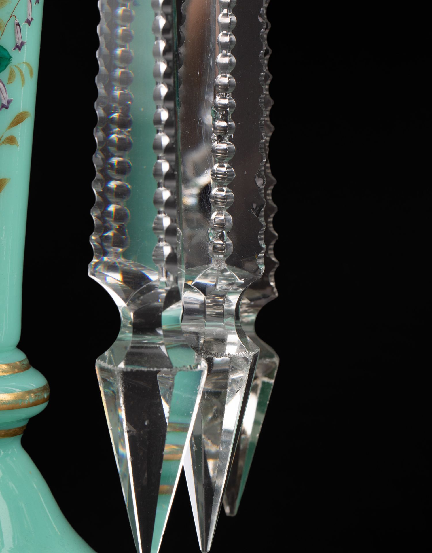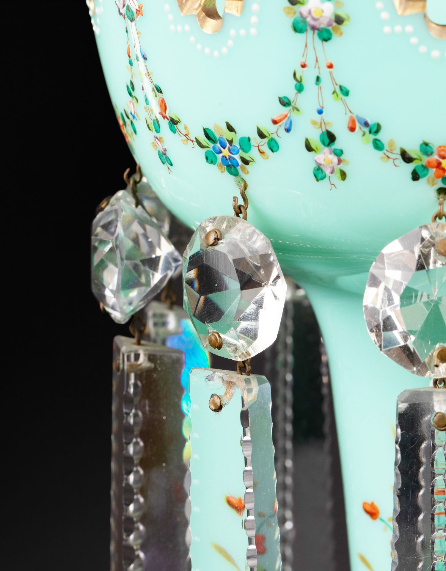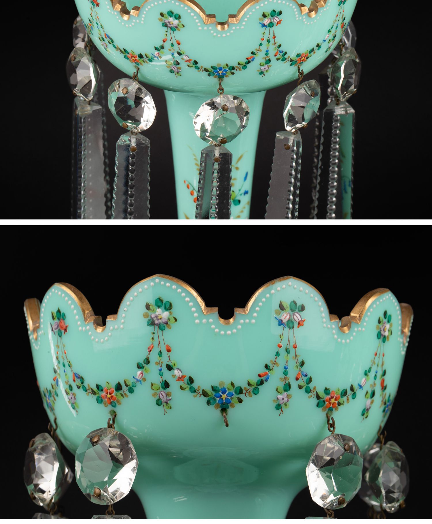 独角鹿西洋古董法国花卉描金浅绿松石色菠萝樽水晶流苏烛台一对