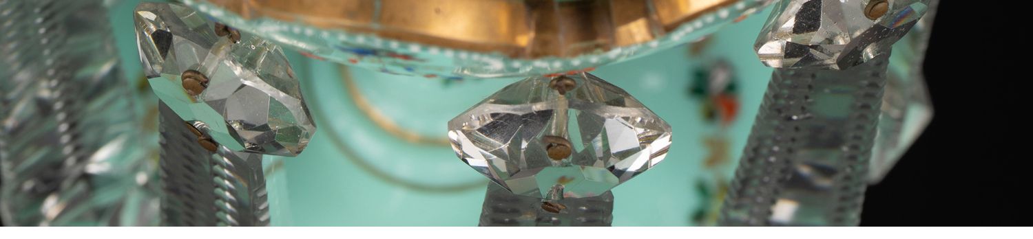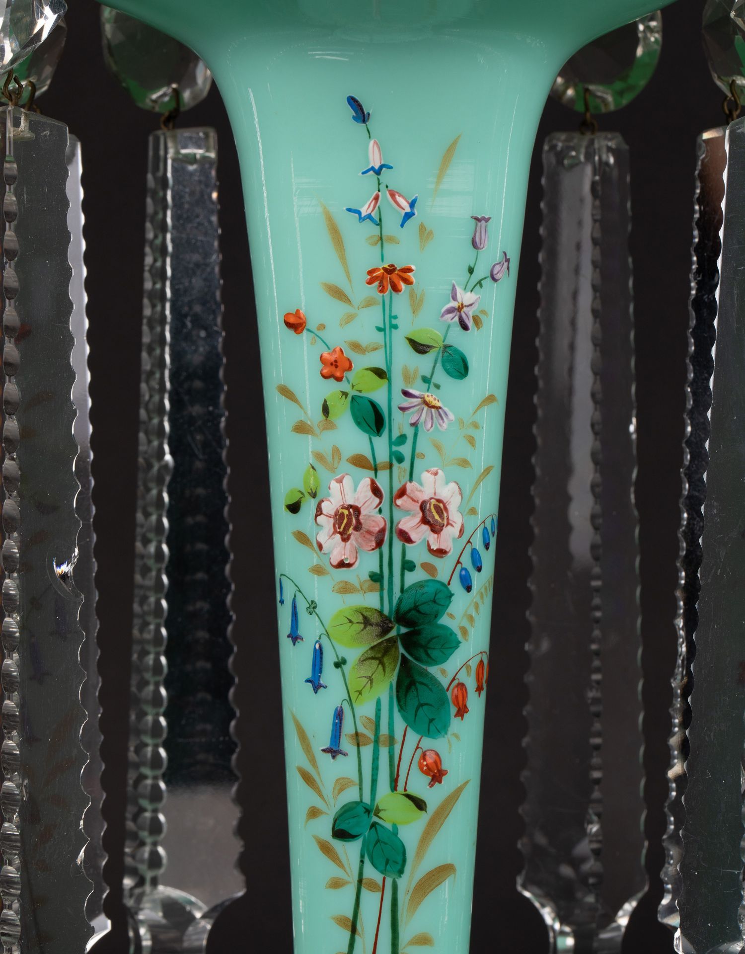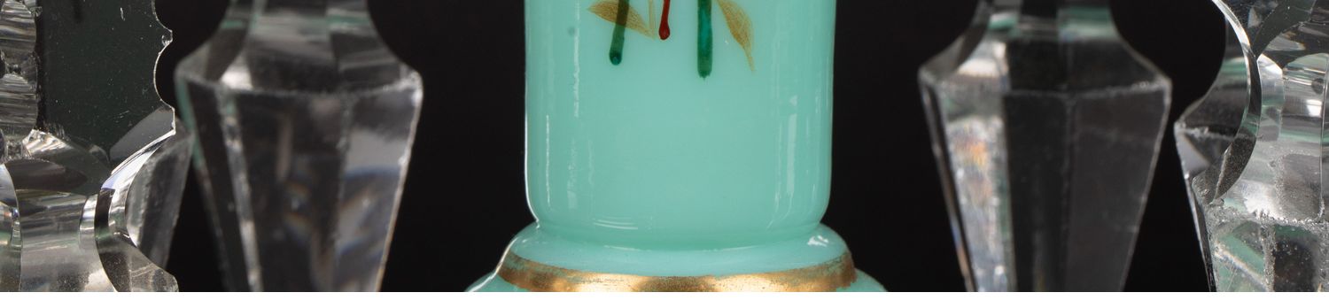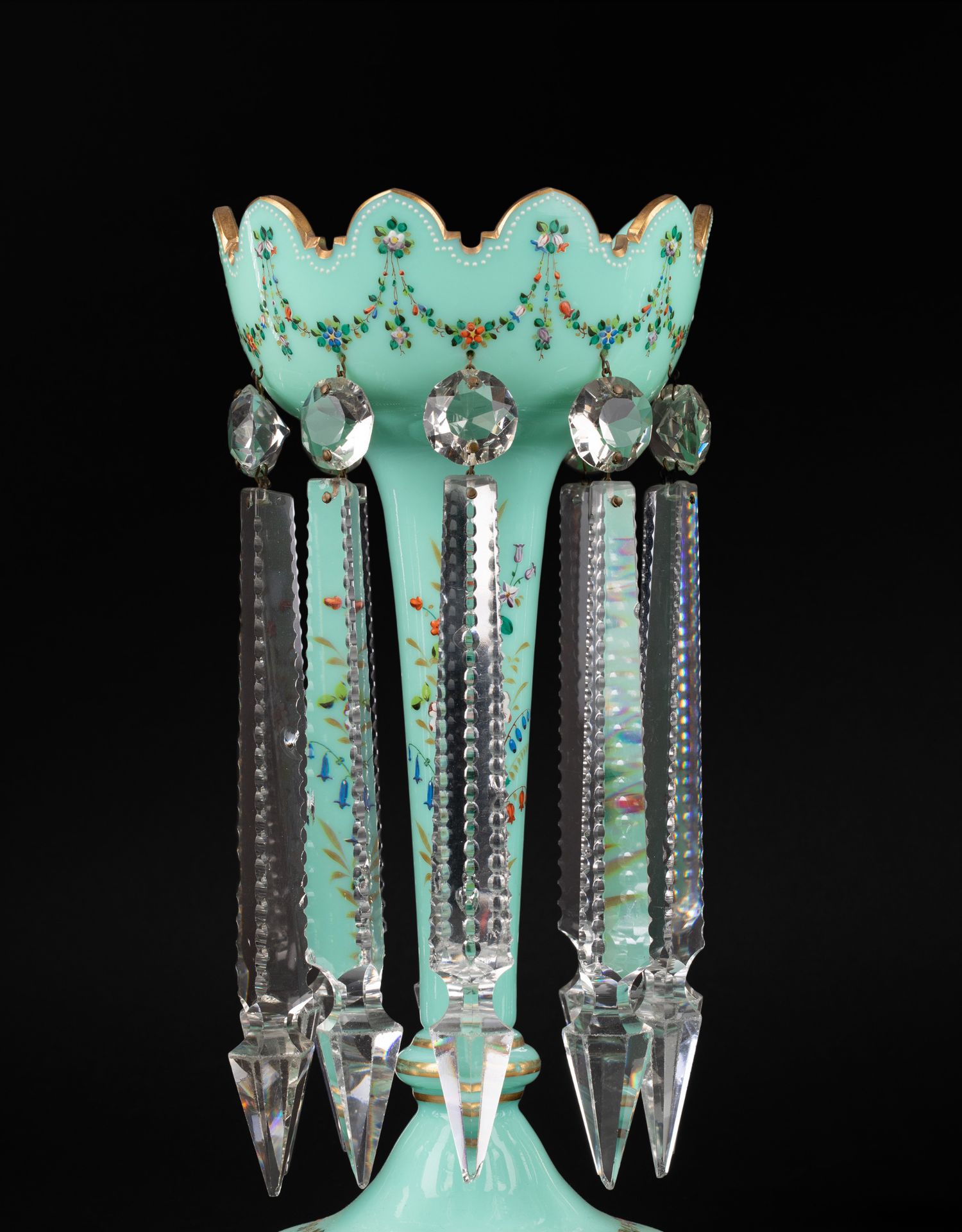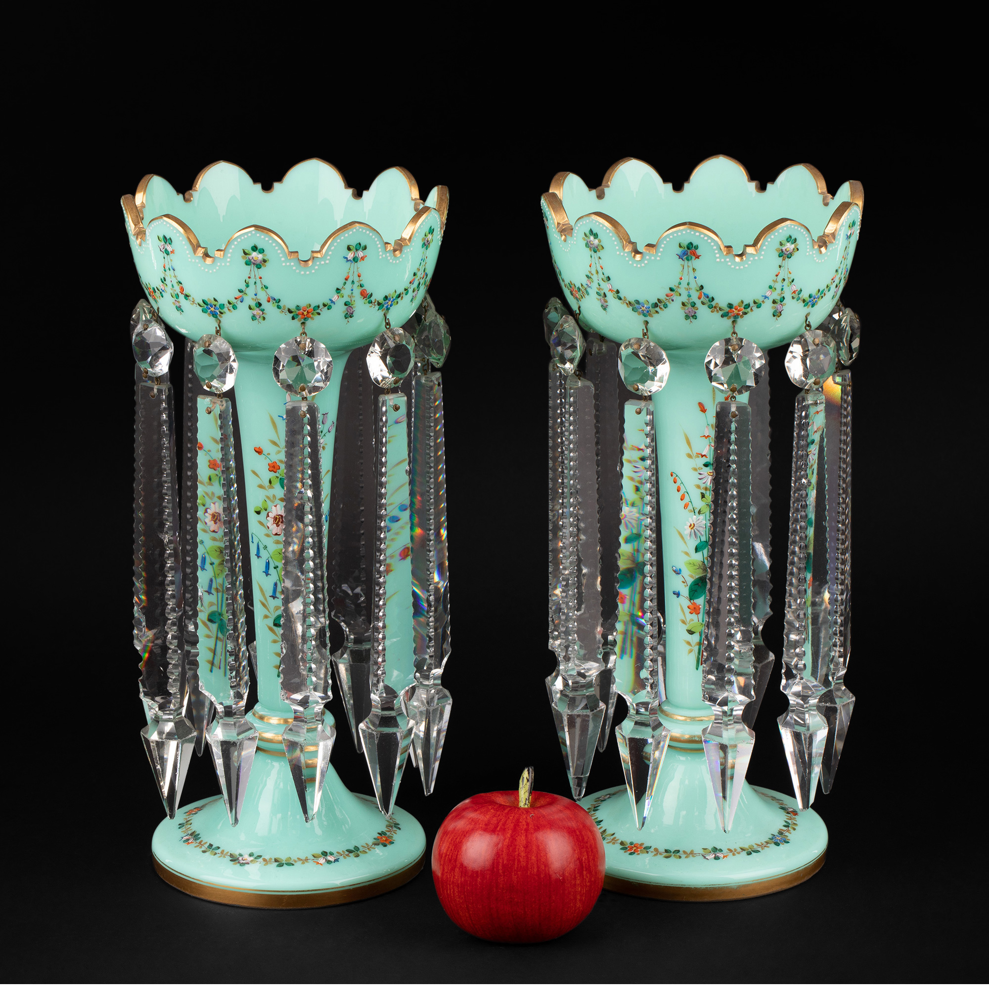 独角鹿西洋古董法国花卉描金浅绿松石色菠萝樽水晶流苏烛台一对
