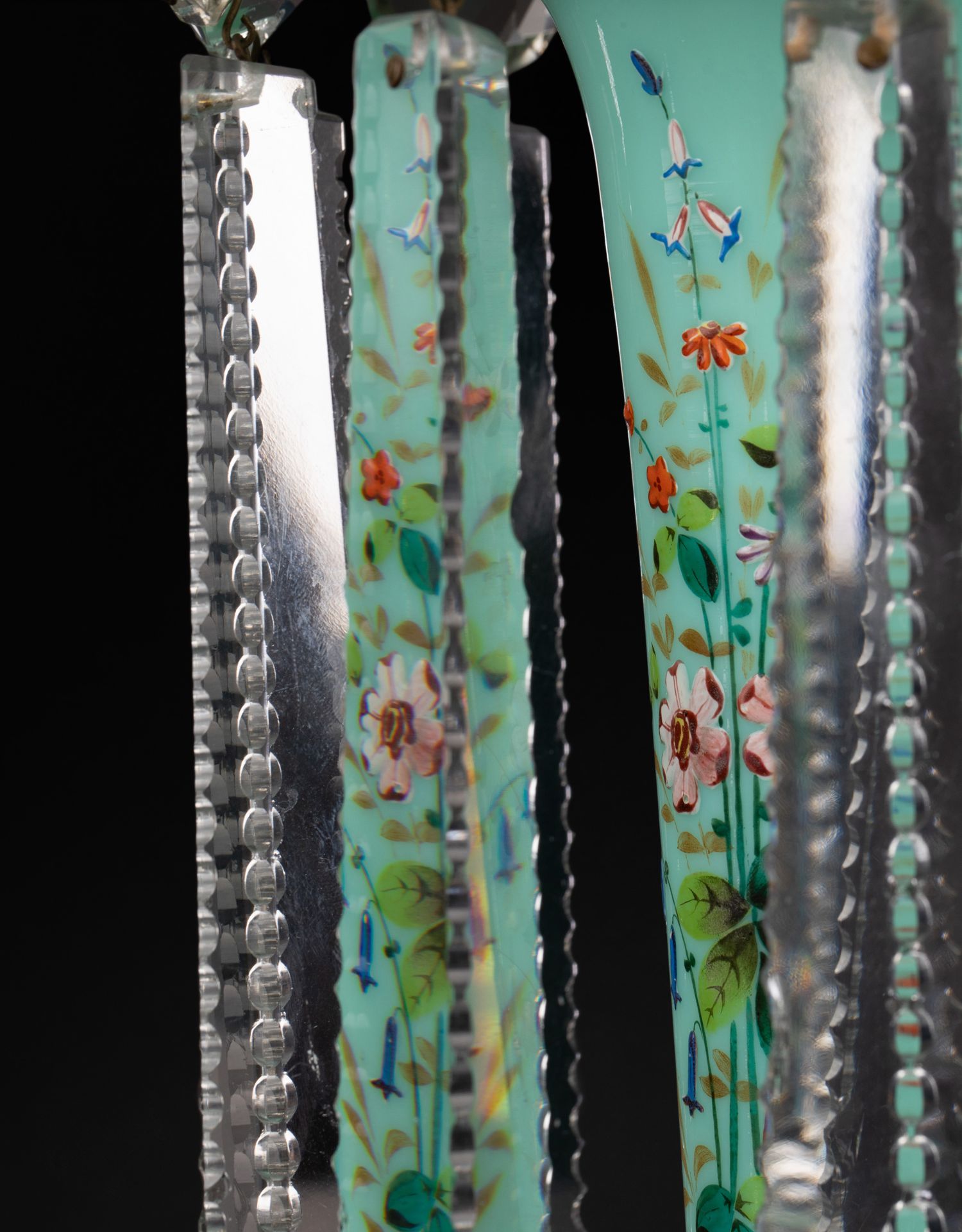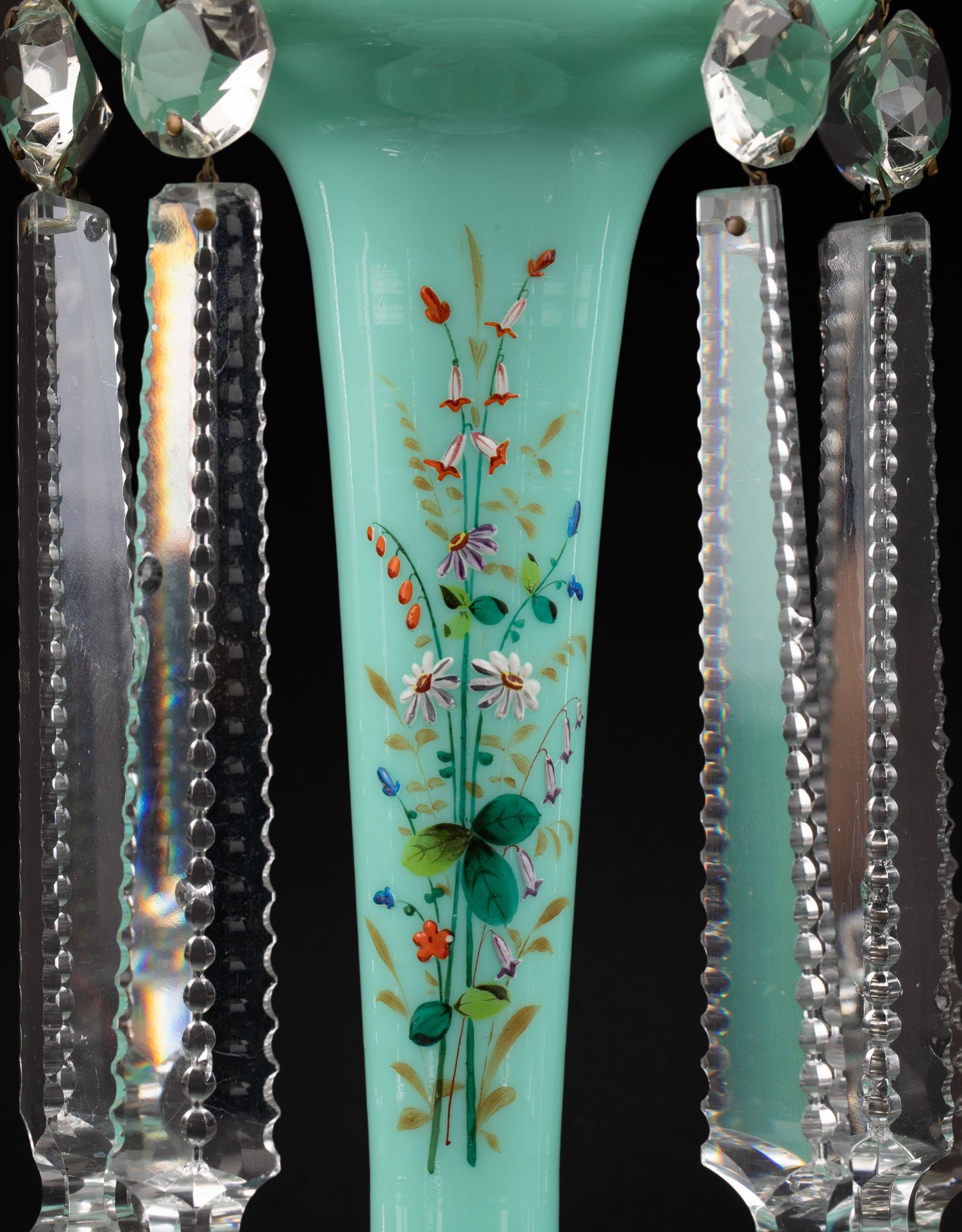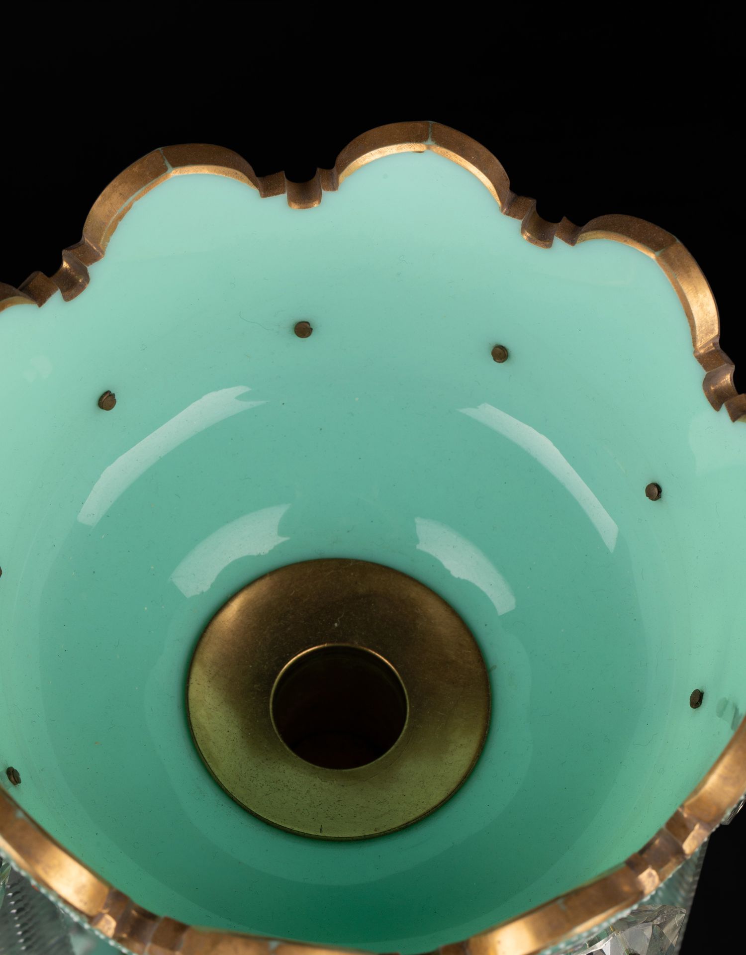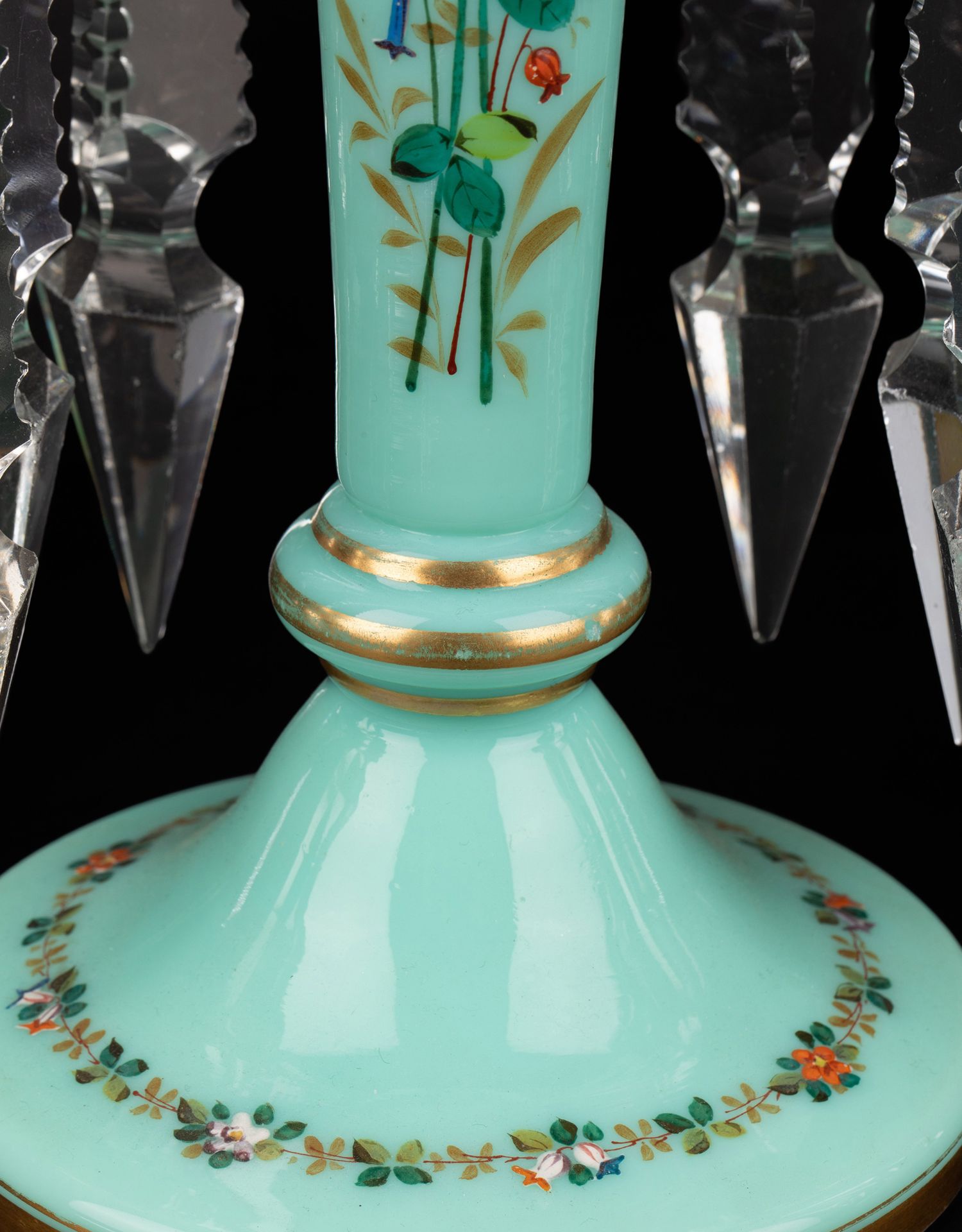 独角鹿西洋古董法国花卉描金浅绿松石色菠萝樽水晶流苏烛台一对
