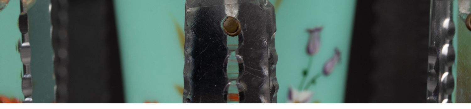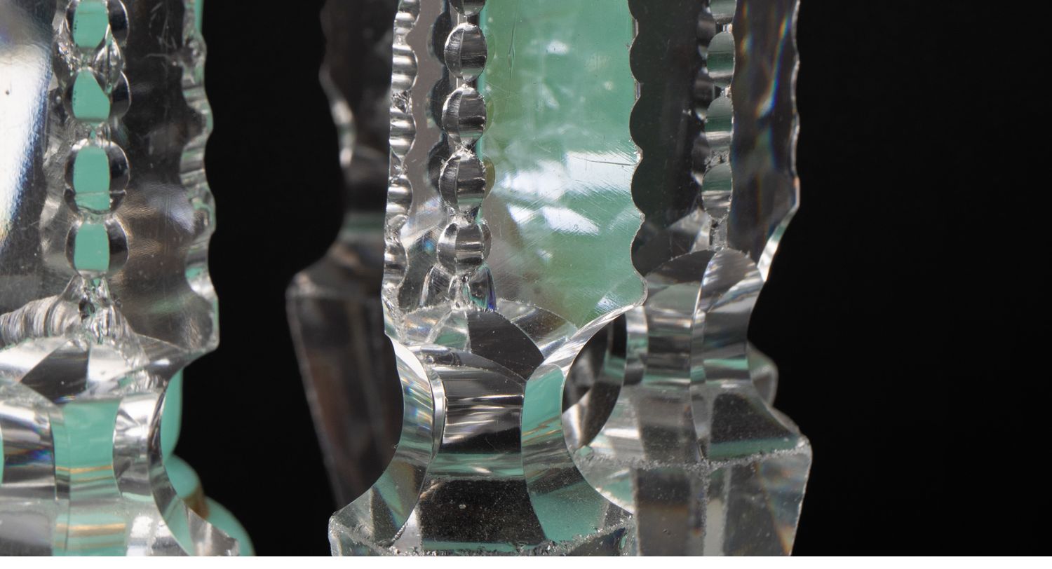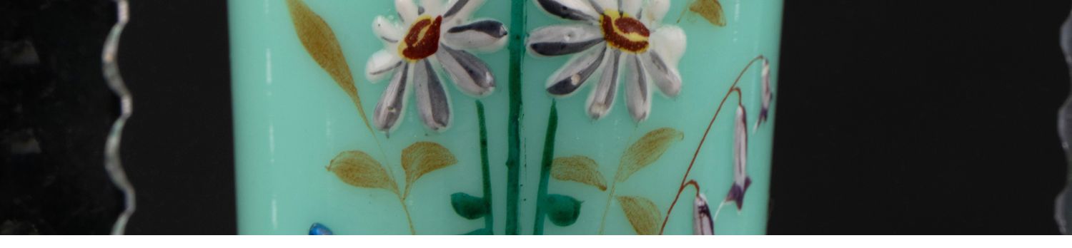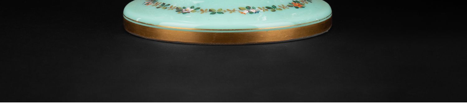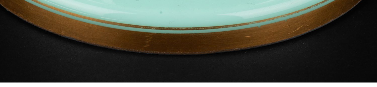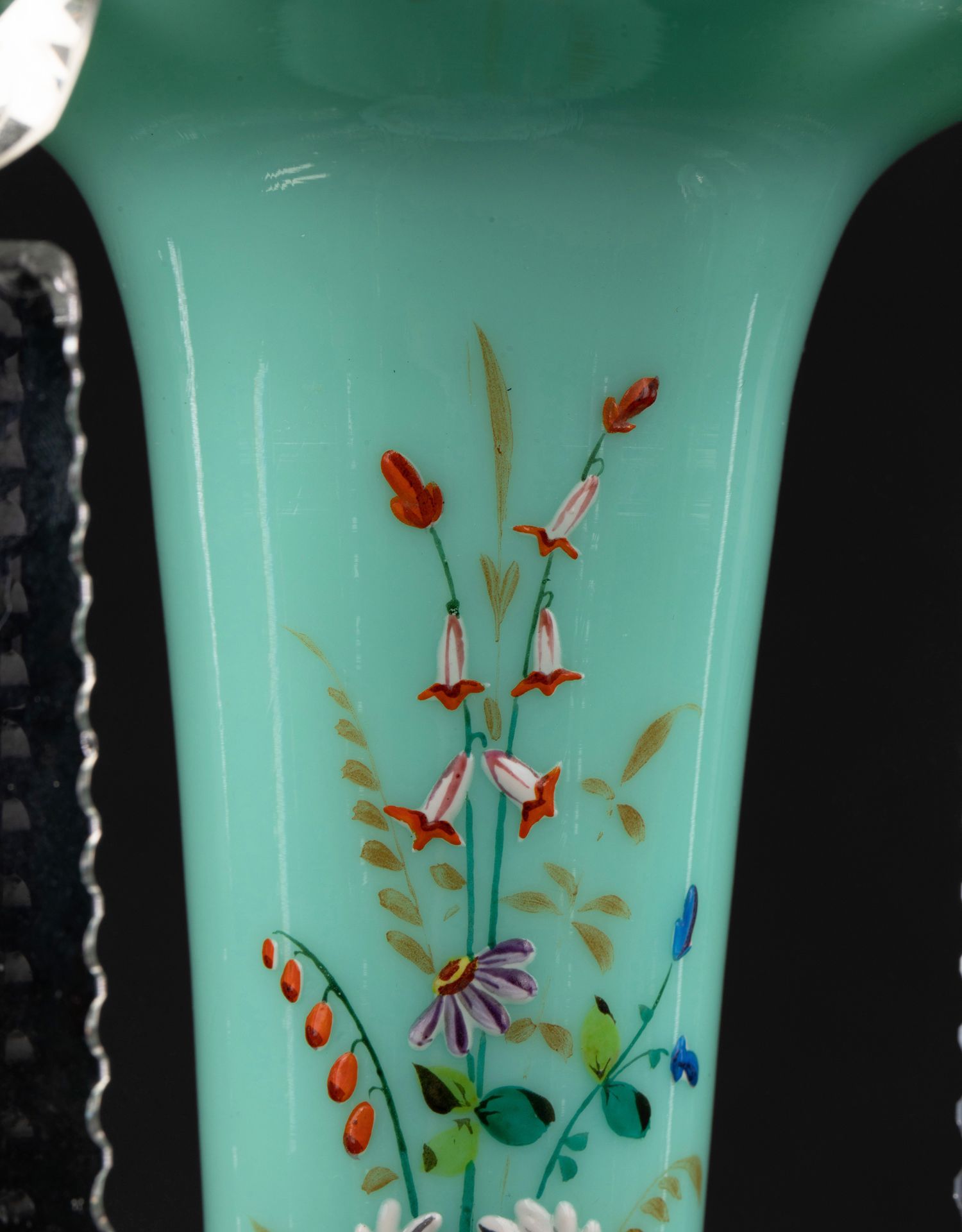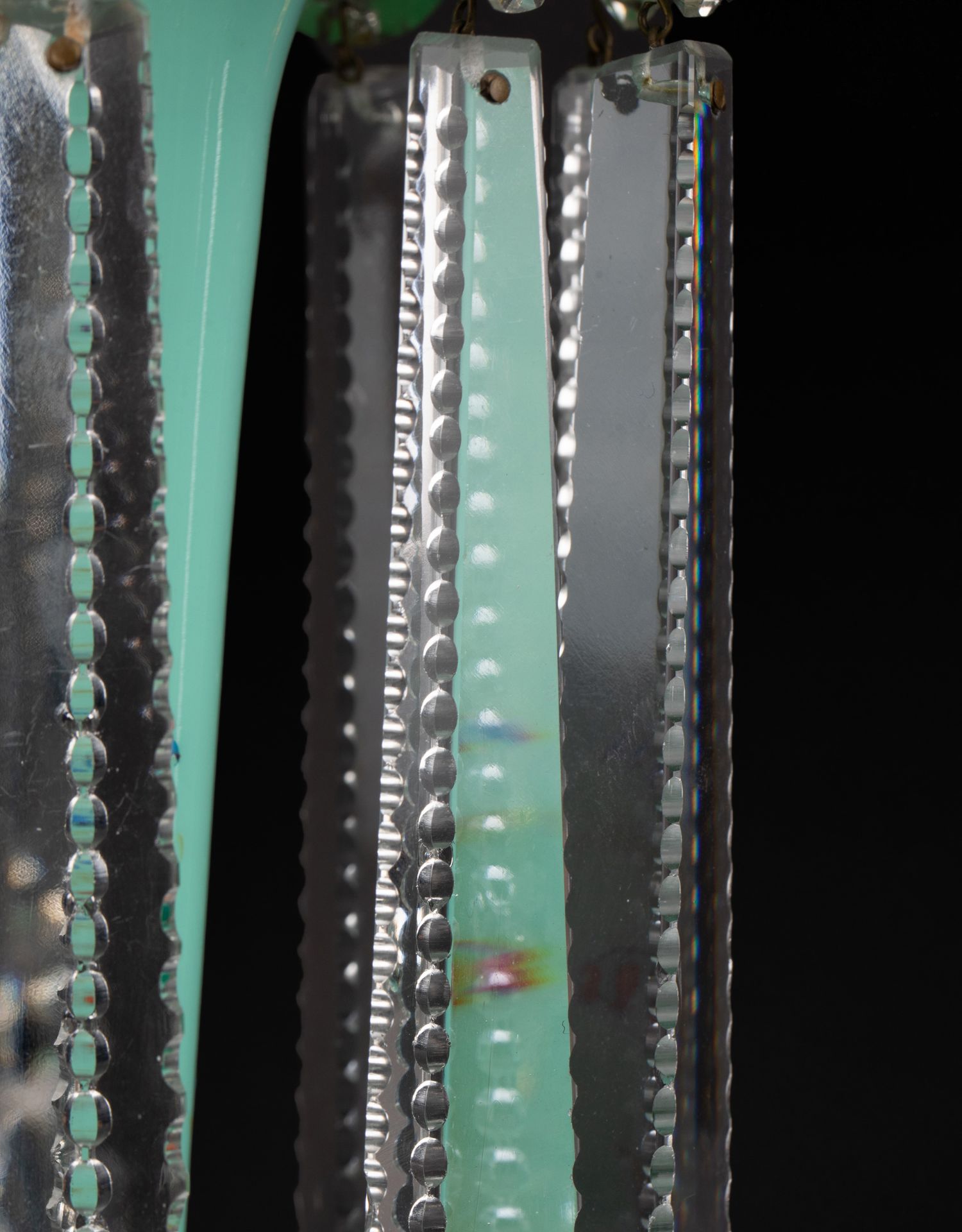 独角鹿西洋古董法国花卉描金浅绿松石色菠萝樽水晶流苏烛台一对