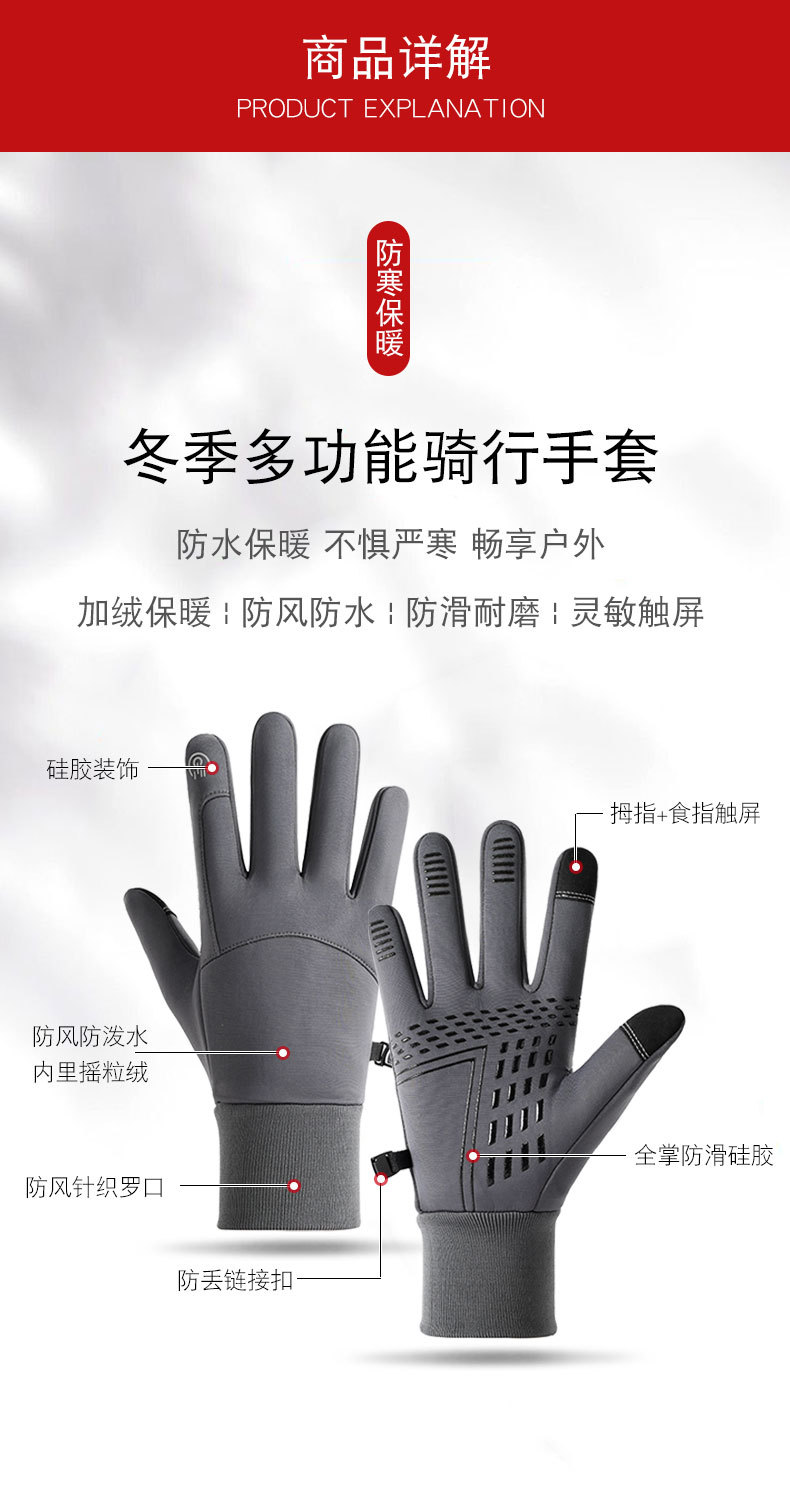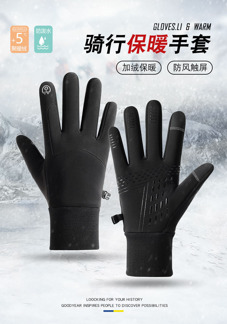 【可触屏加绒防滑手套】秋冬款登山摩托车骑行保暖手套防寒防泼水