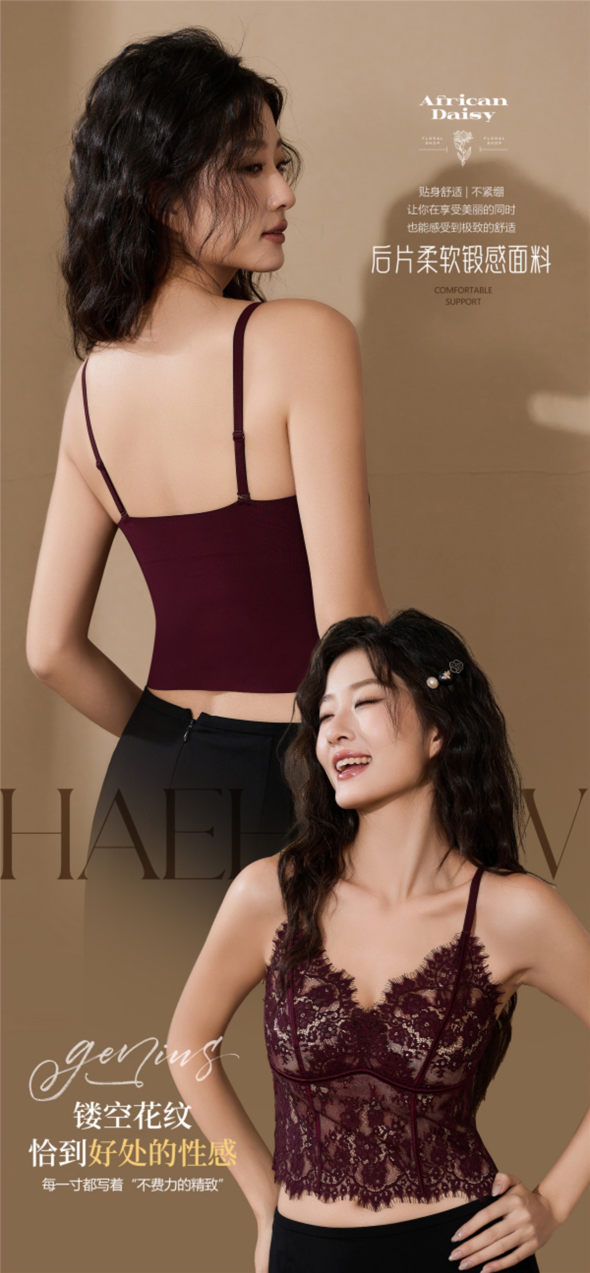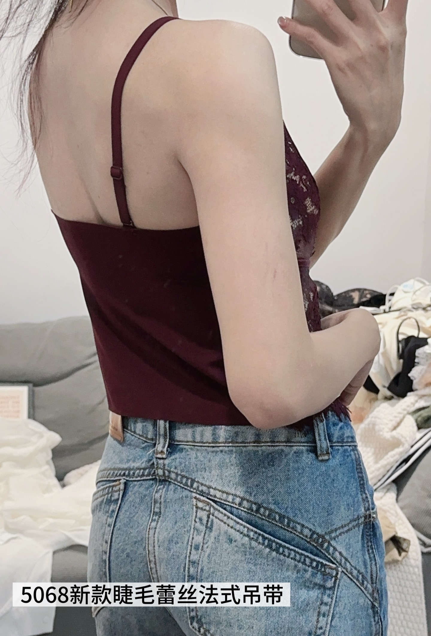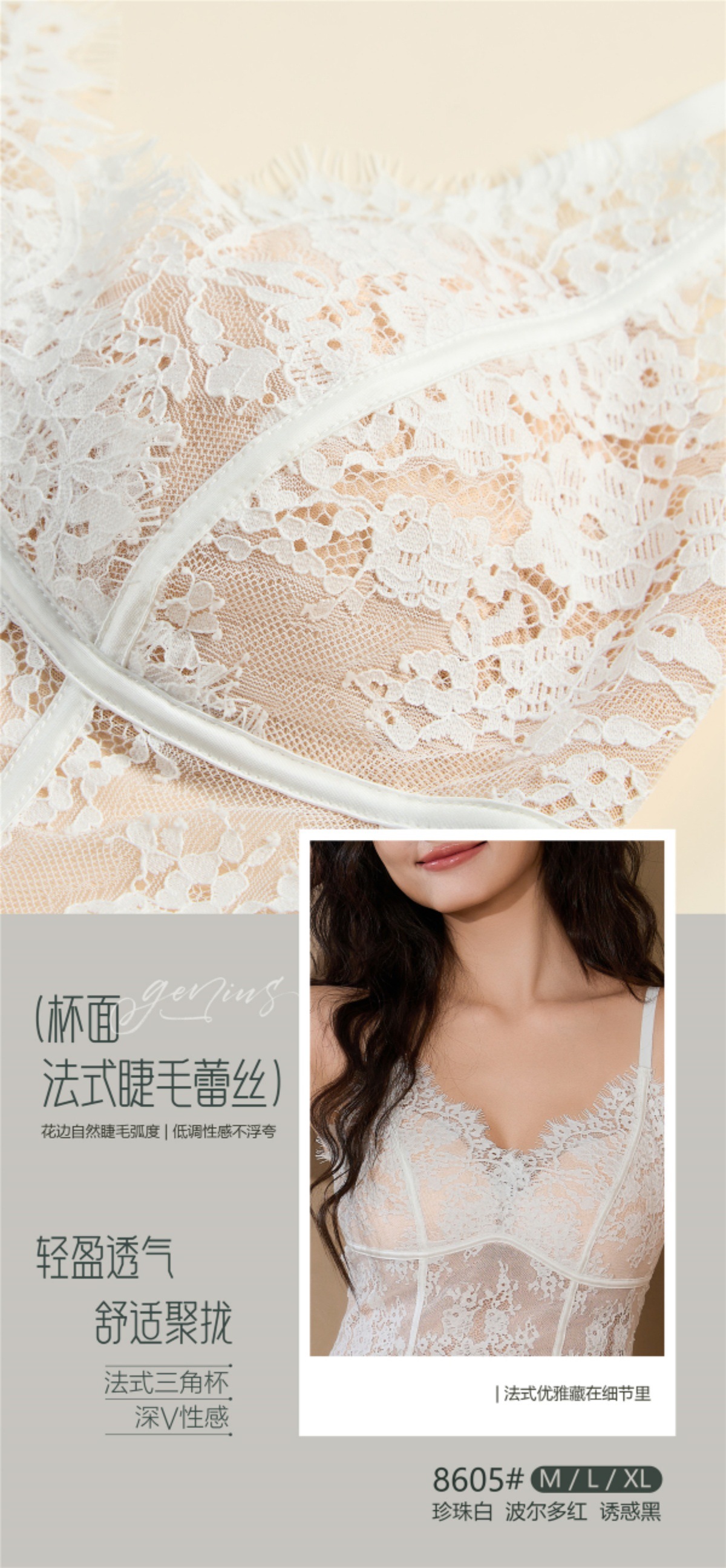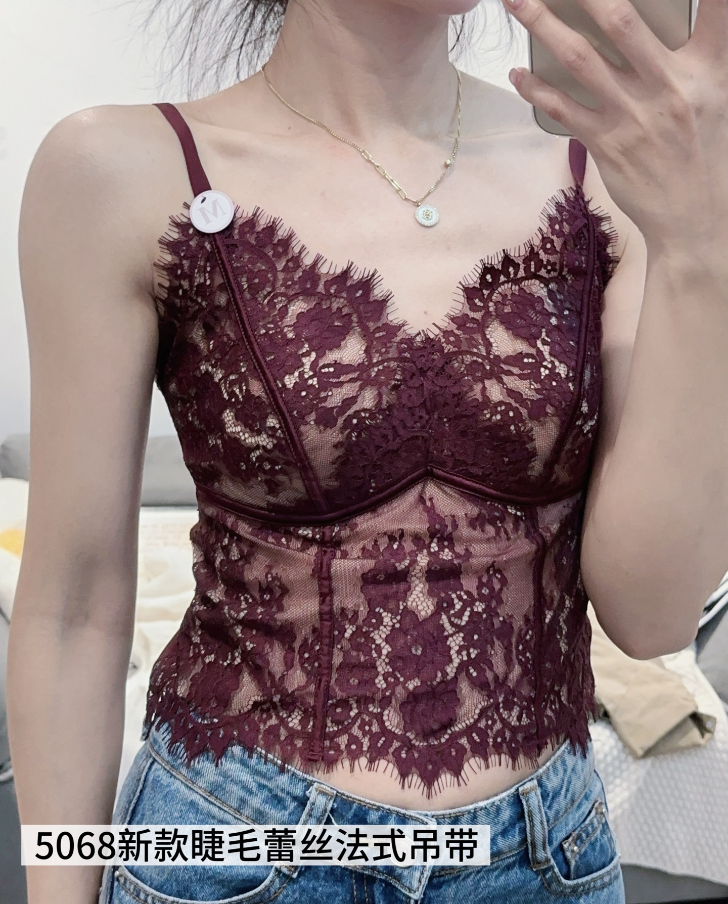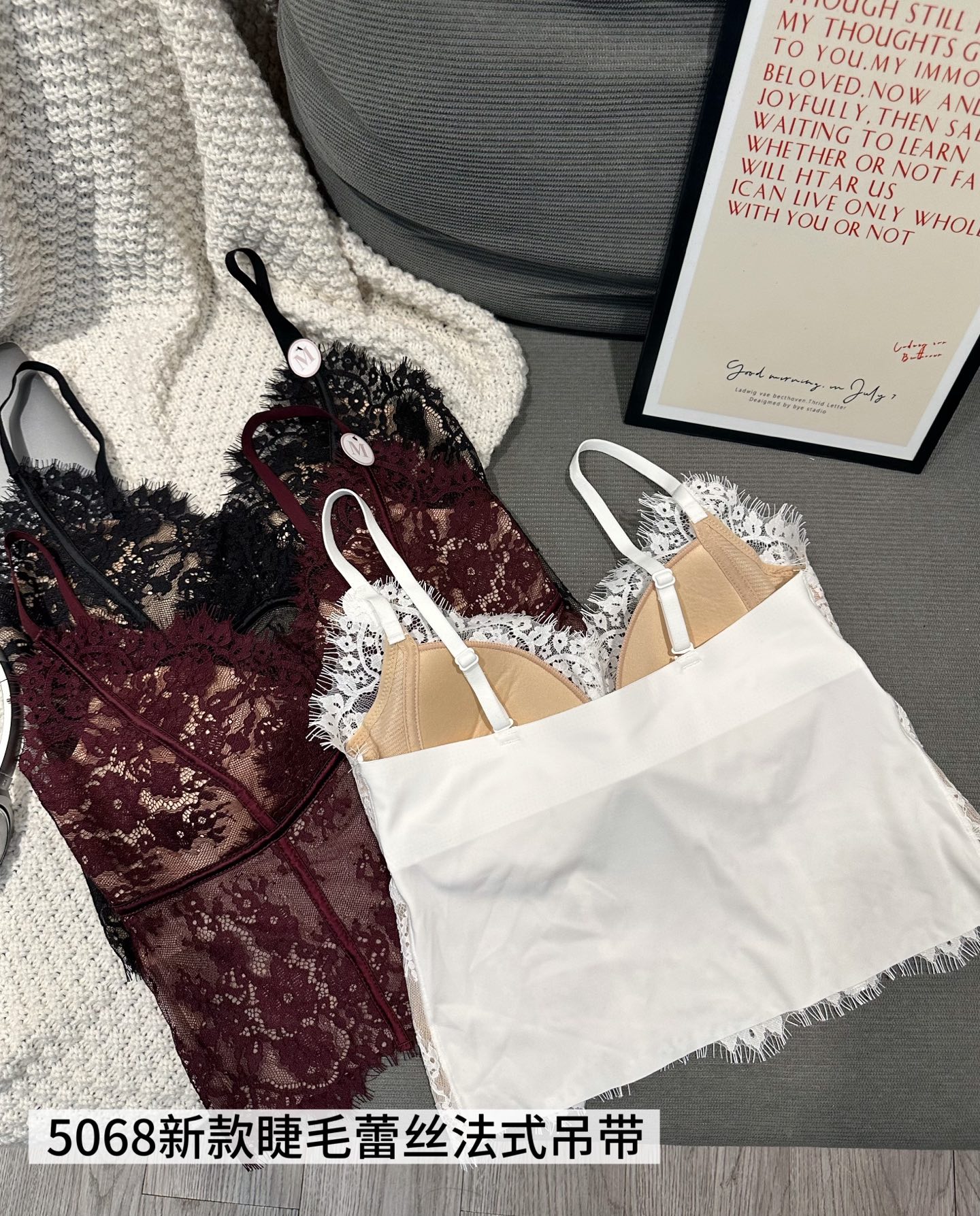 【GZ】无忧购春季新款睫毛法式蕾丝法式聚拢三角固定杯修身小细带背心5068(现货48小时内发货)