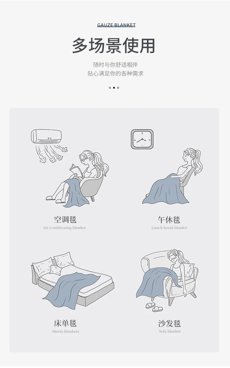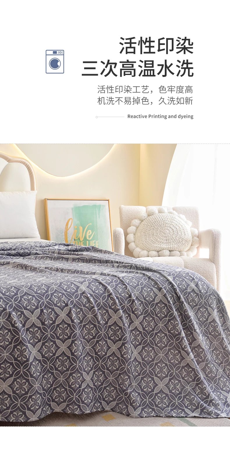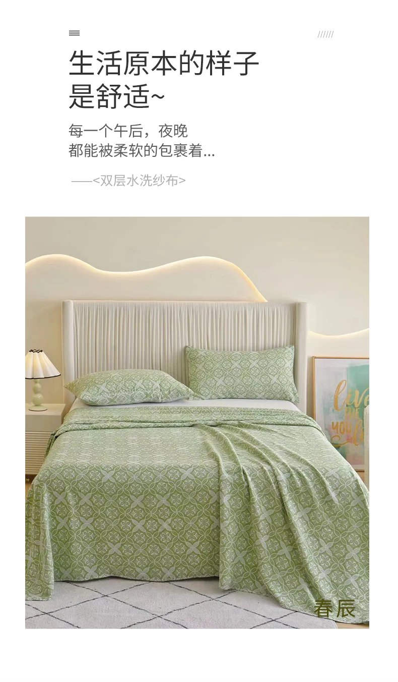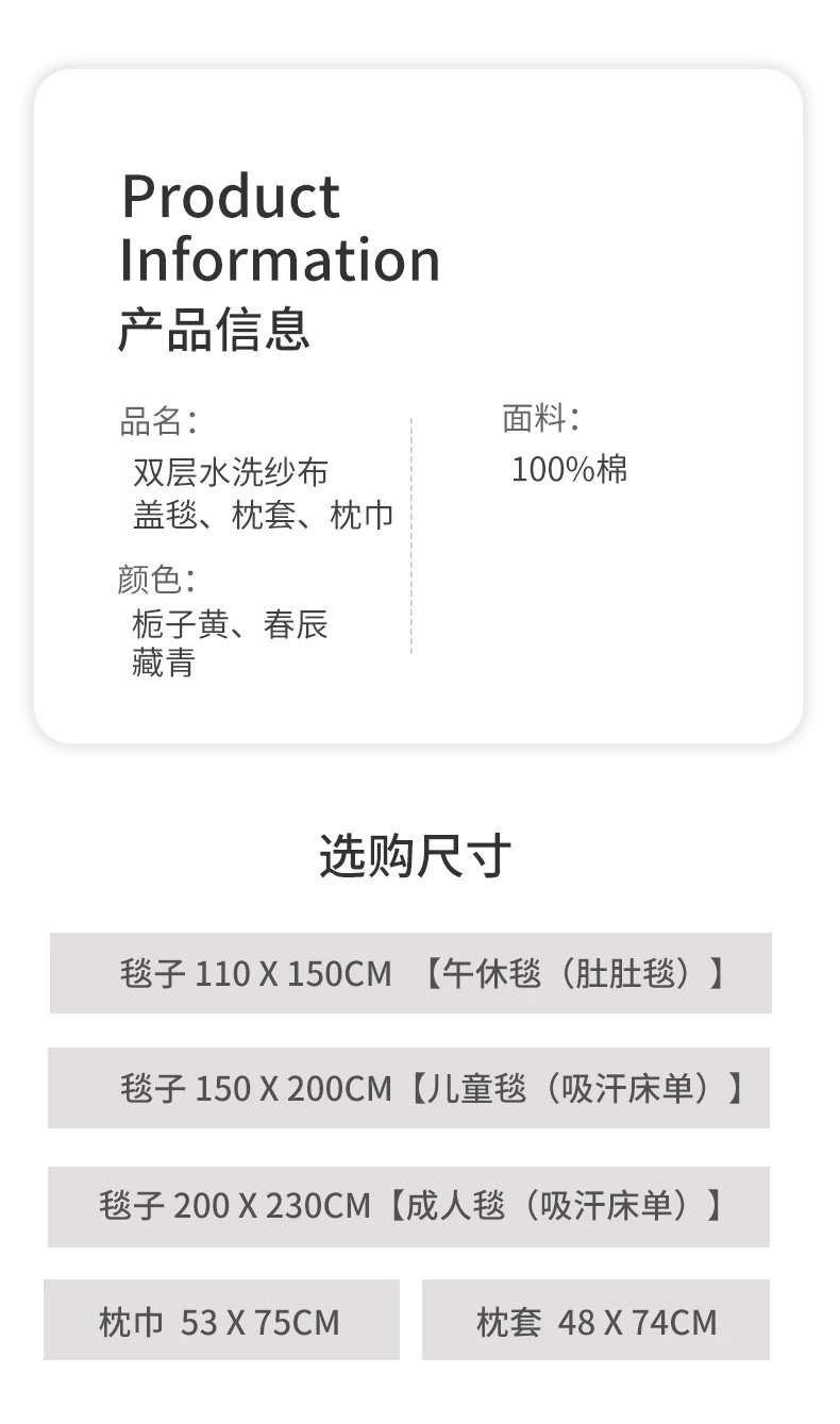产品名称:三次高温水洗双层纱布盖毯、枕巾、枕套