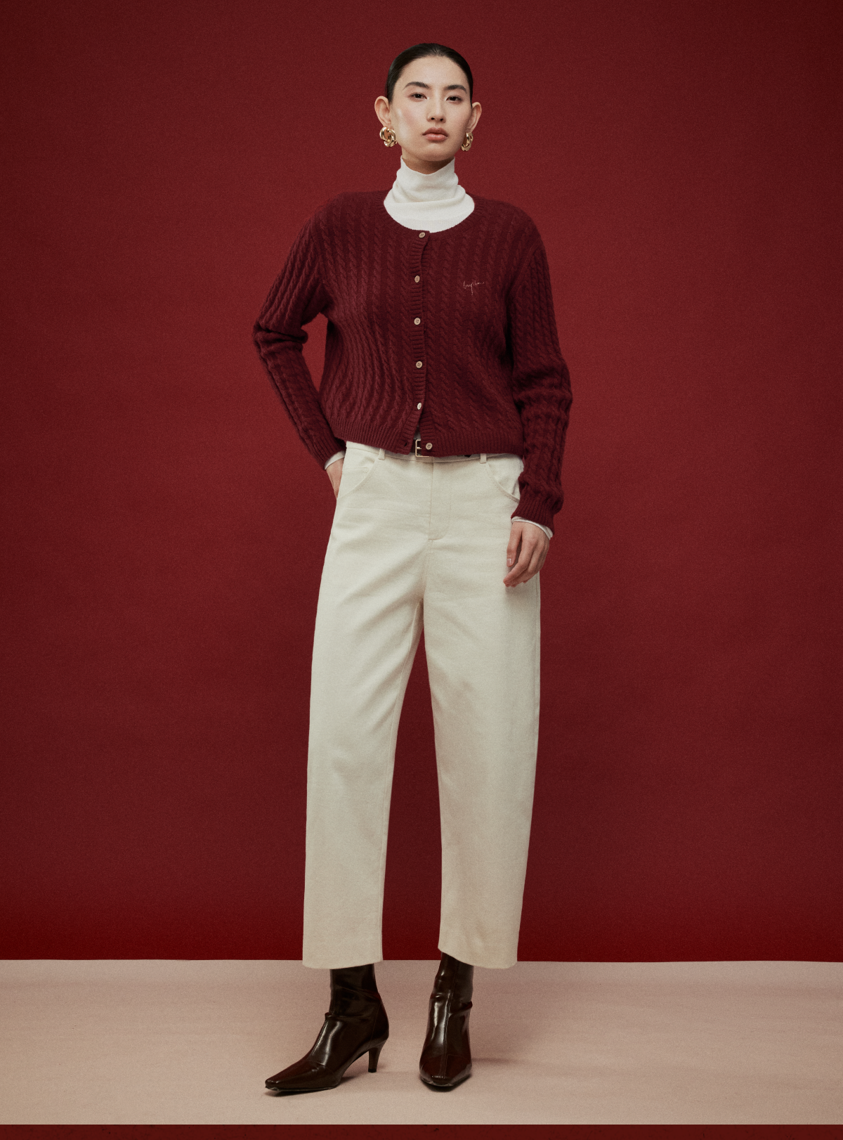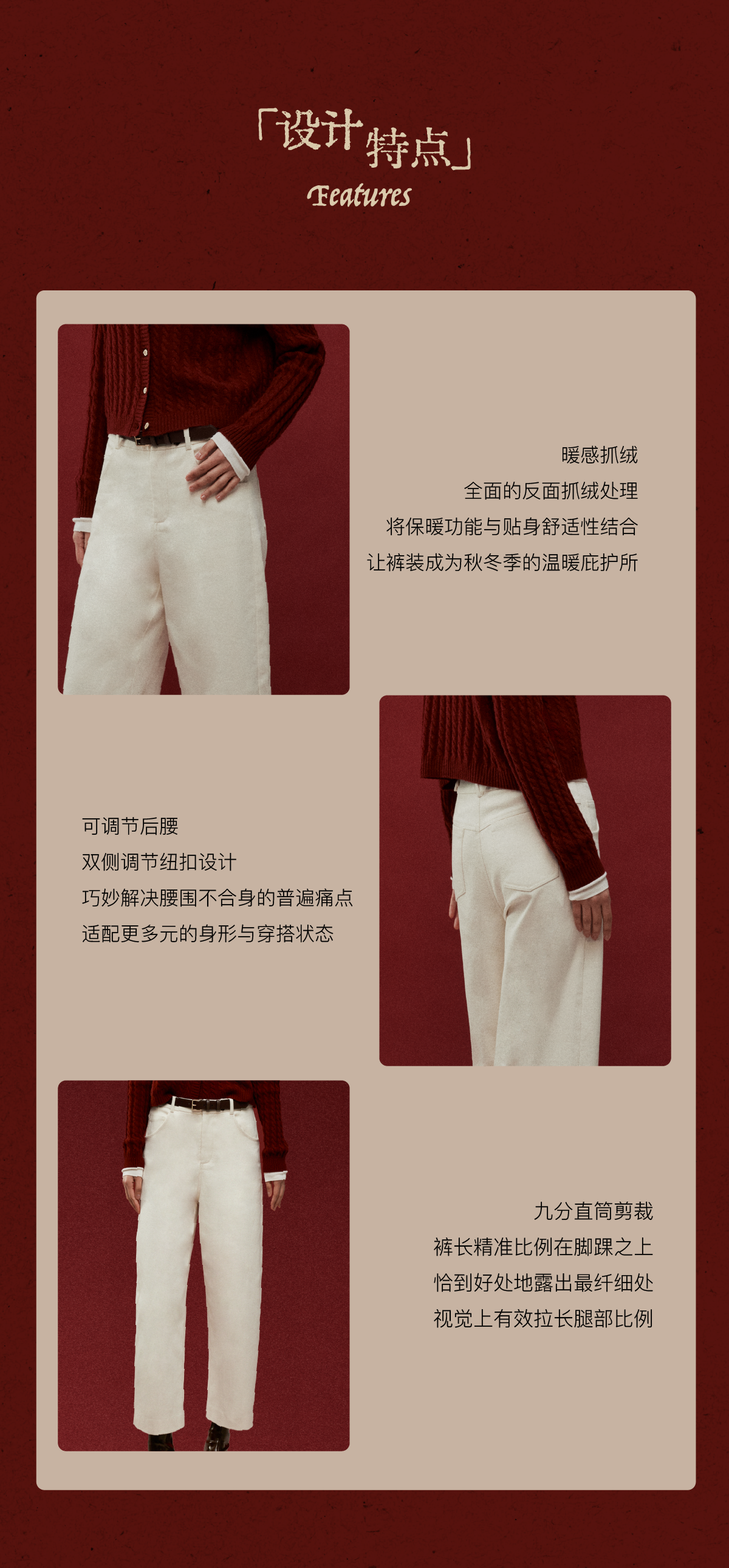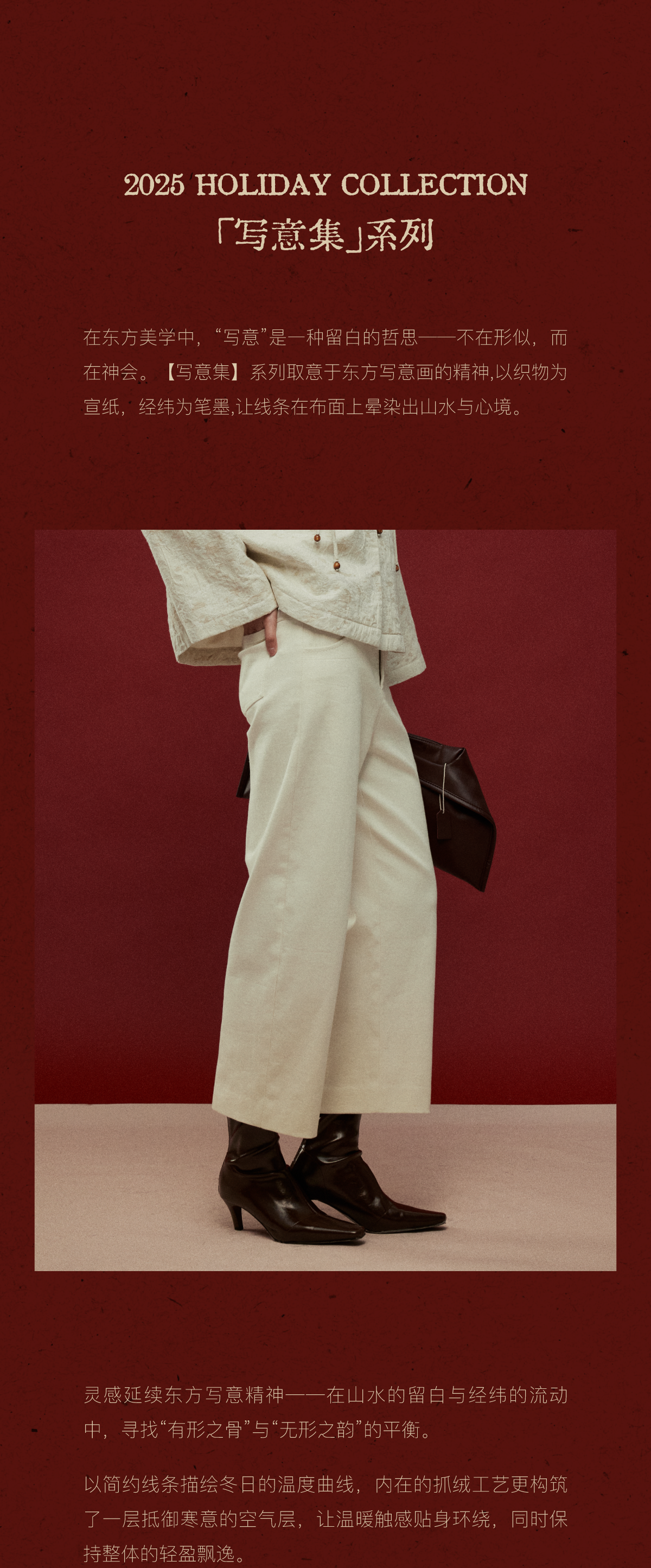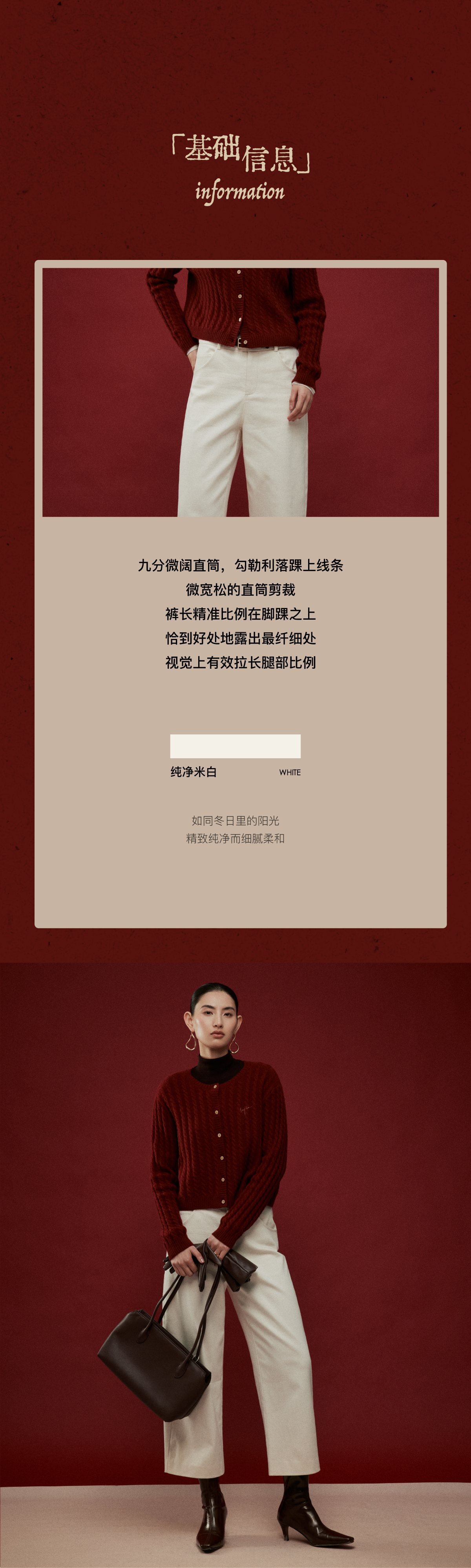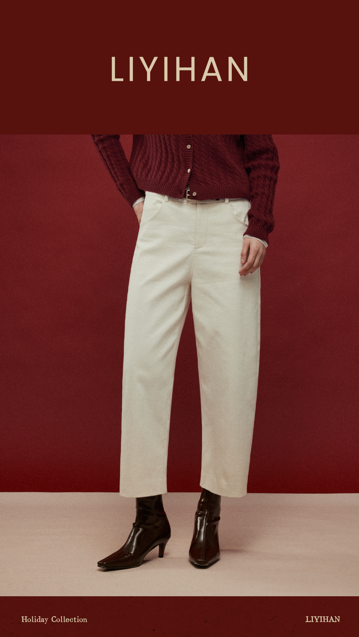 LIYIHAN写意集 2025年冬季新款羊绒混纺直筒休闲裤米白色女九分裤