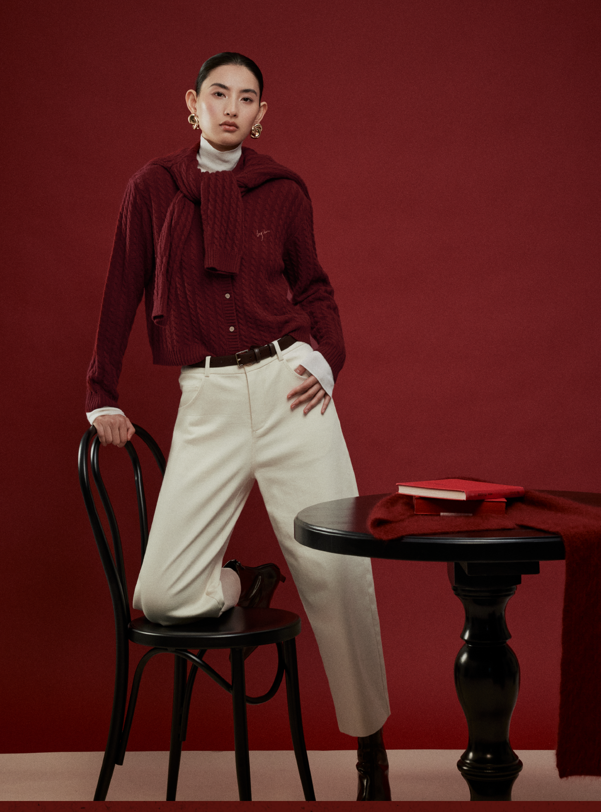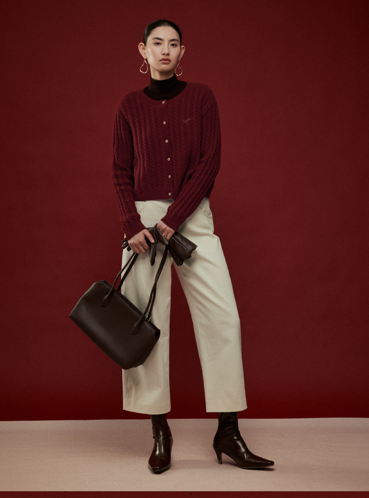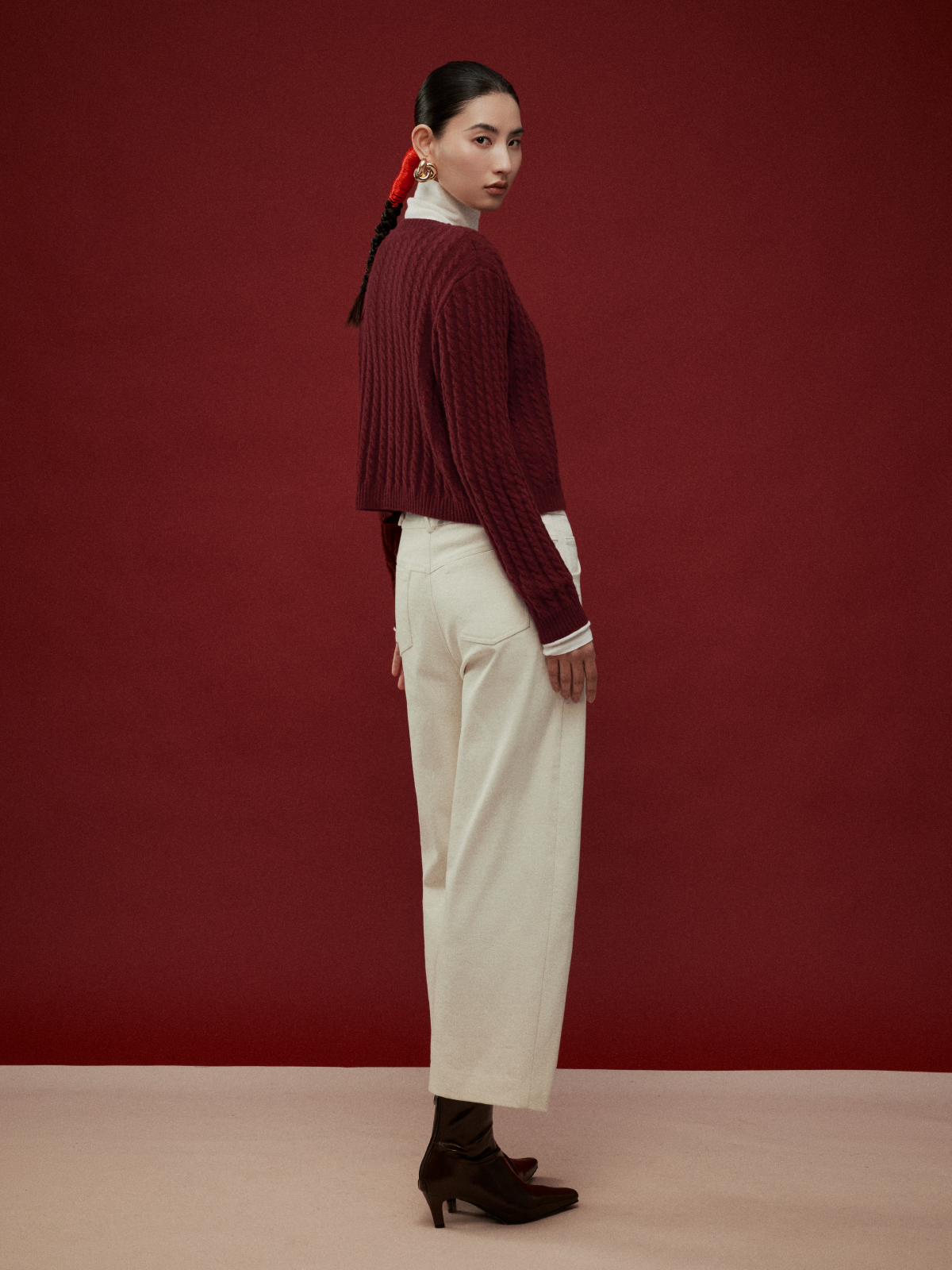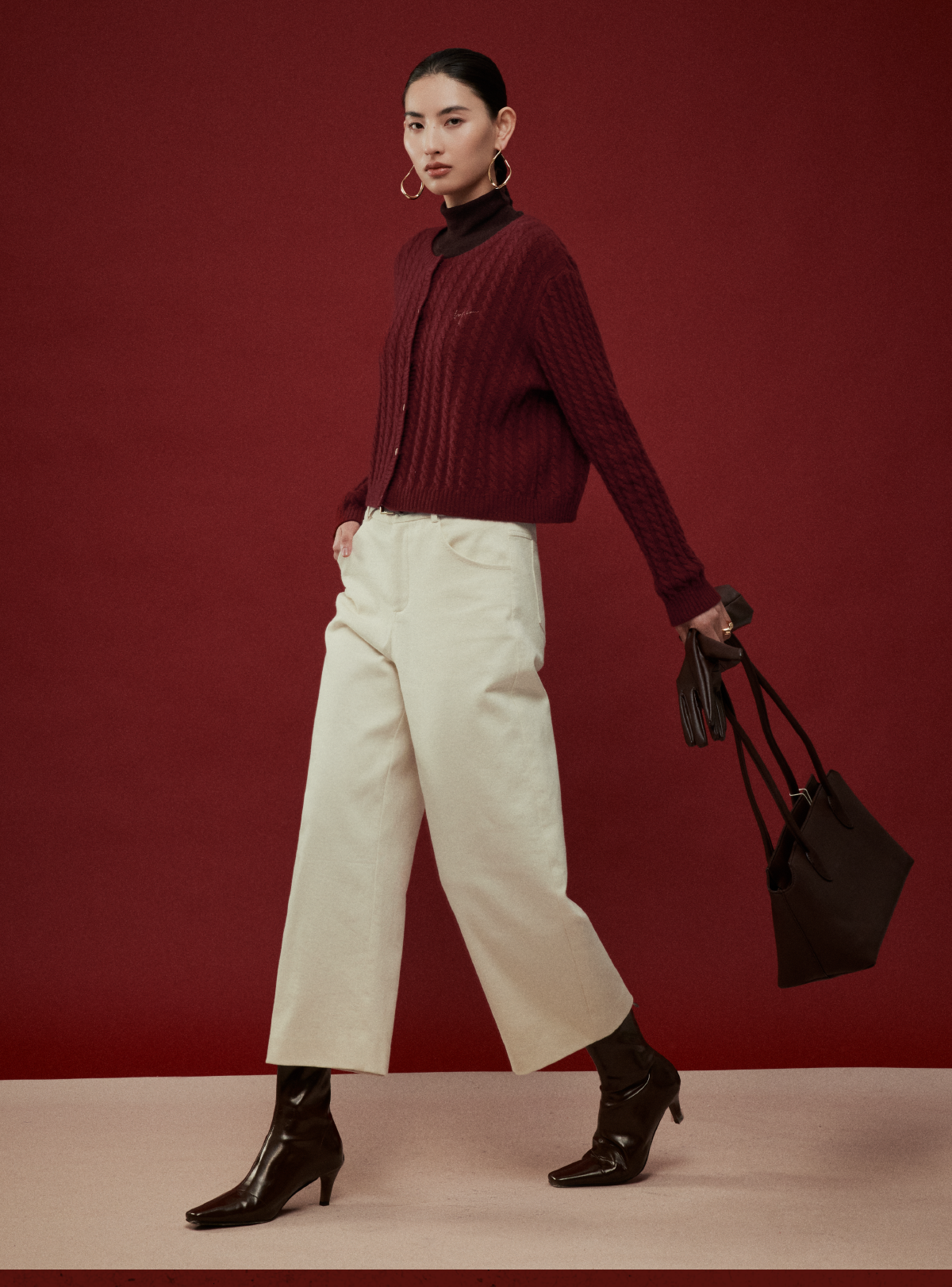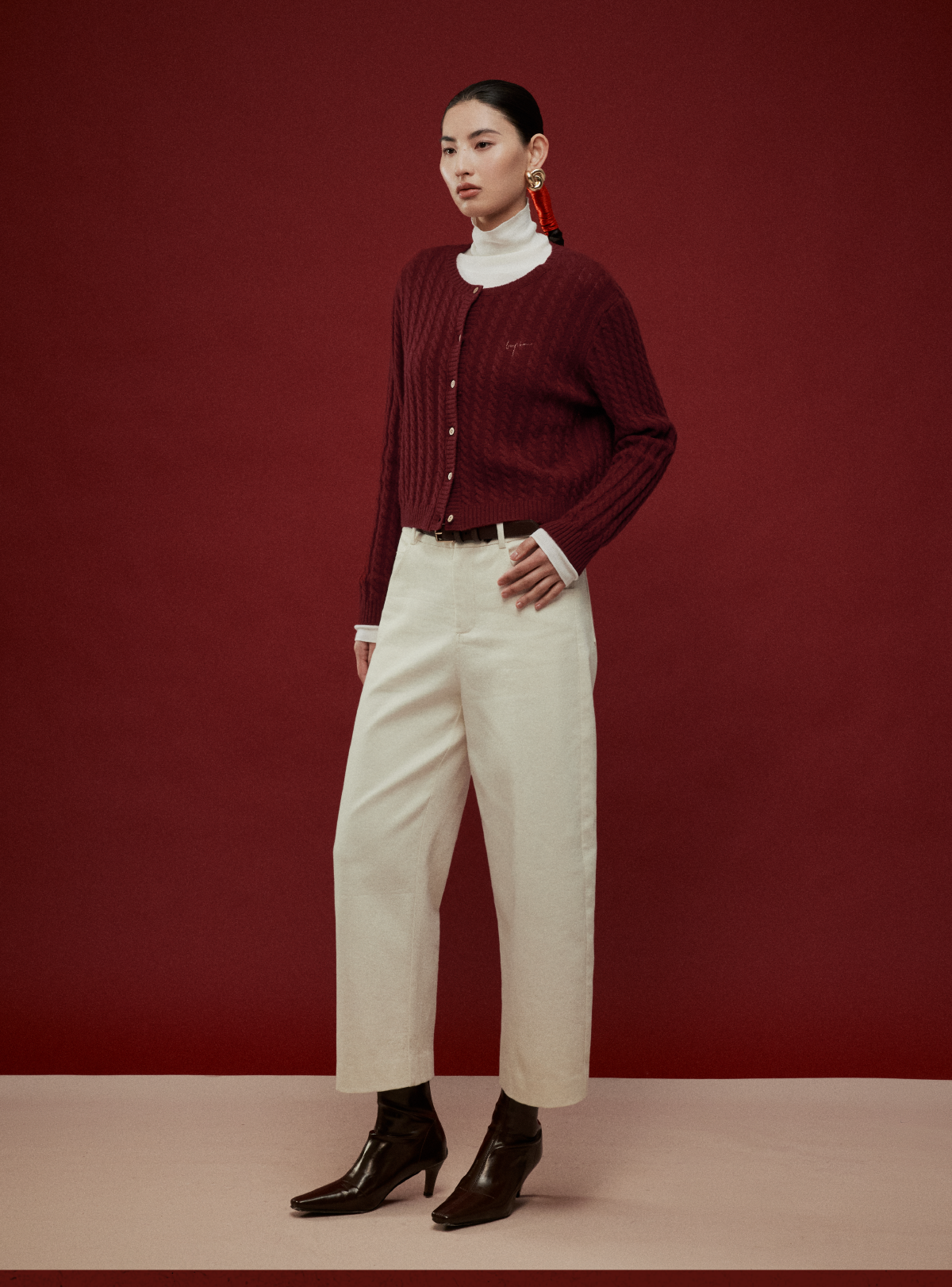 LIYIHAN写意集 2025年冬季新款羊绒混纺直筒休闲裤米白色女九分裤