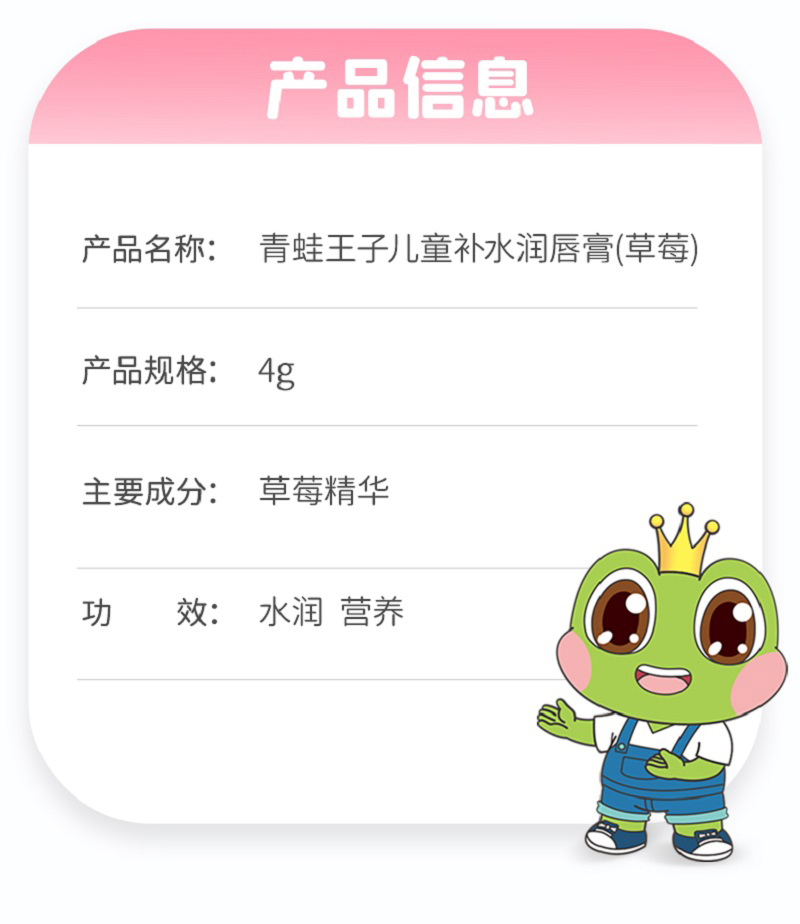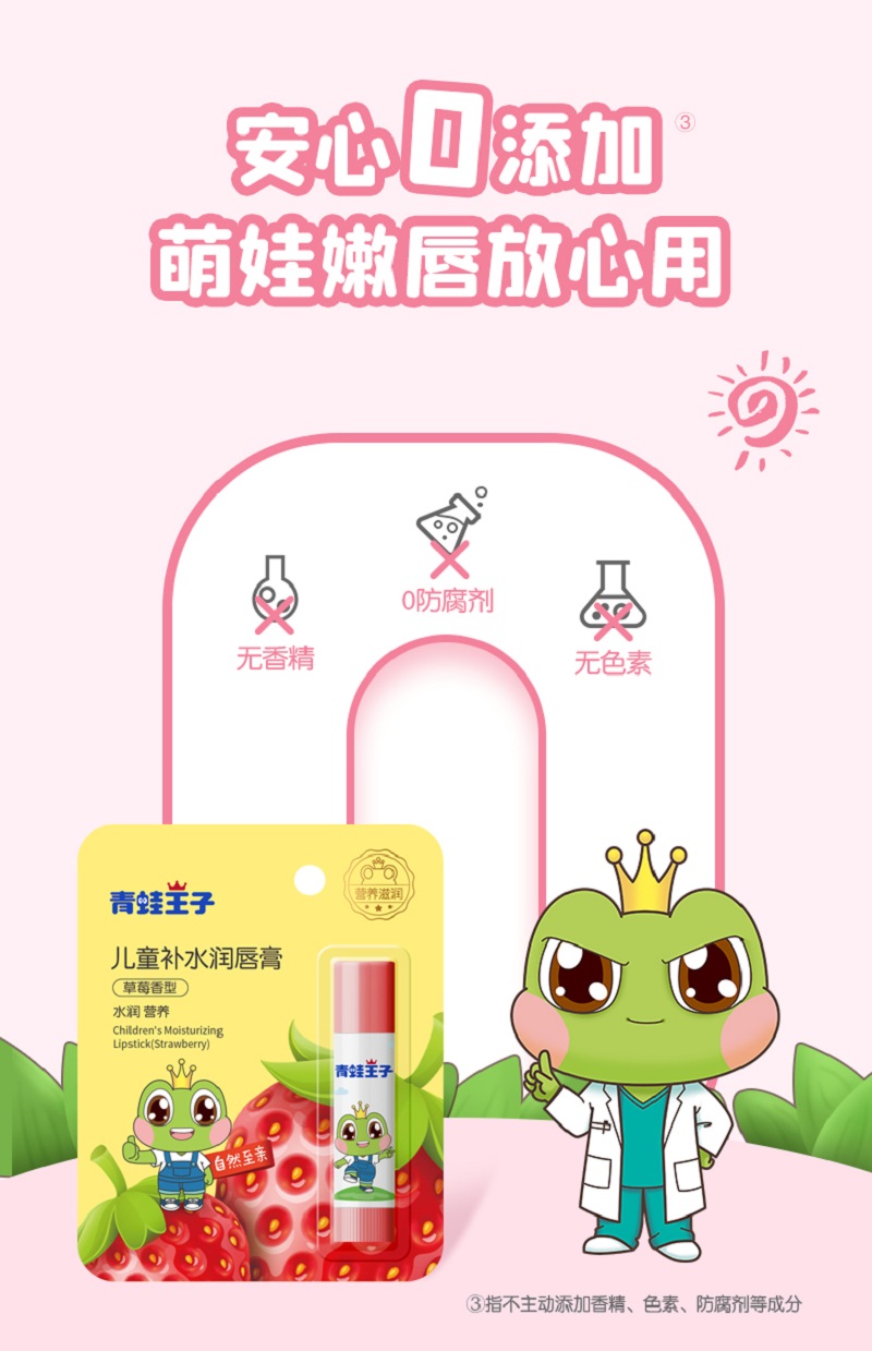 青蛙王子儿童补水润唇膏4g草莓香型滋润保湿宝宝护唇膏防干裂