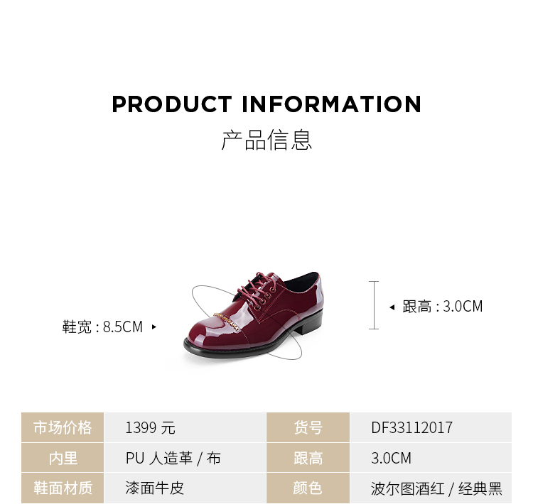 D:FUSE迪芙斯秋冬款时尚百搭漆皮乐福鞋平底小皮鞋DF33112017