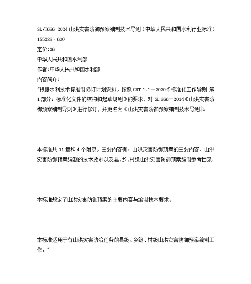 SL/T666-2024山洪灾害防御预案编制技术导则(中华人民共和国水利行业标准)