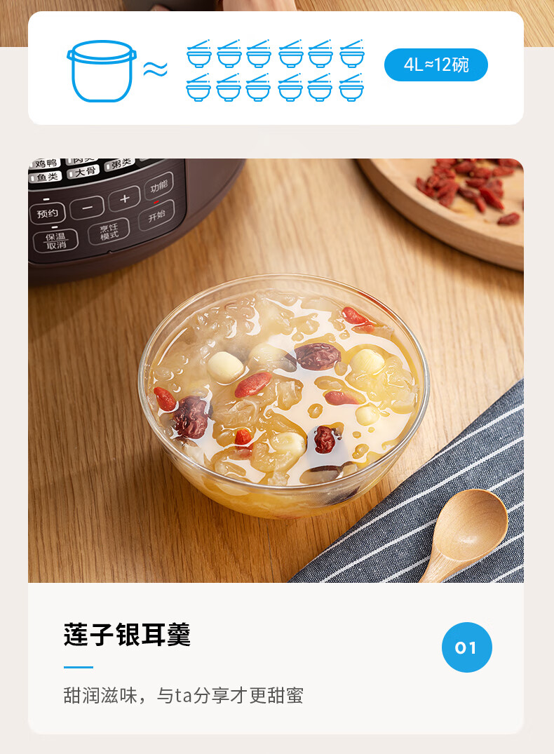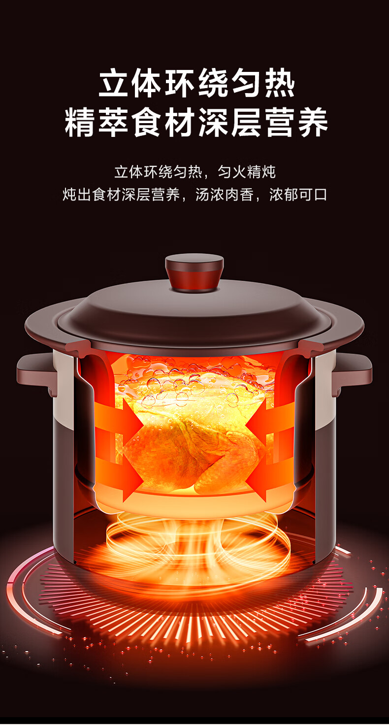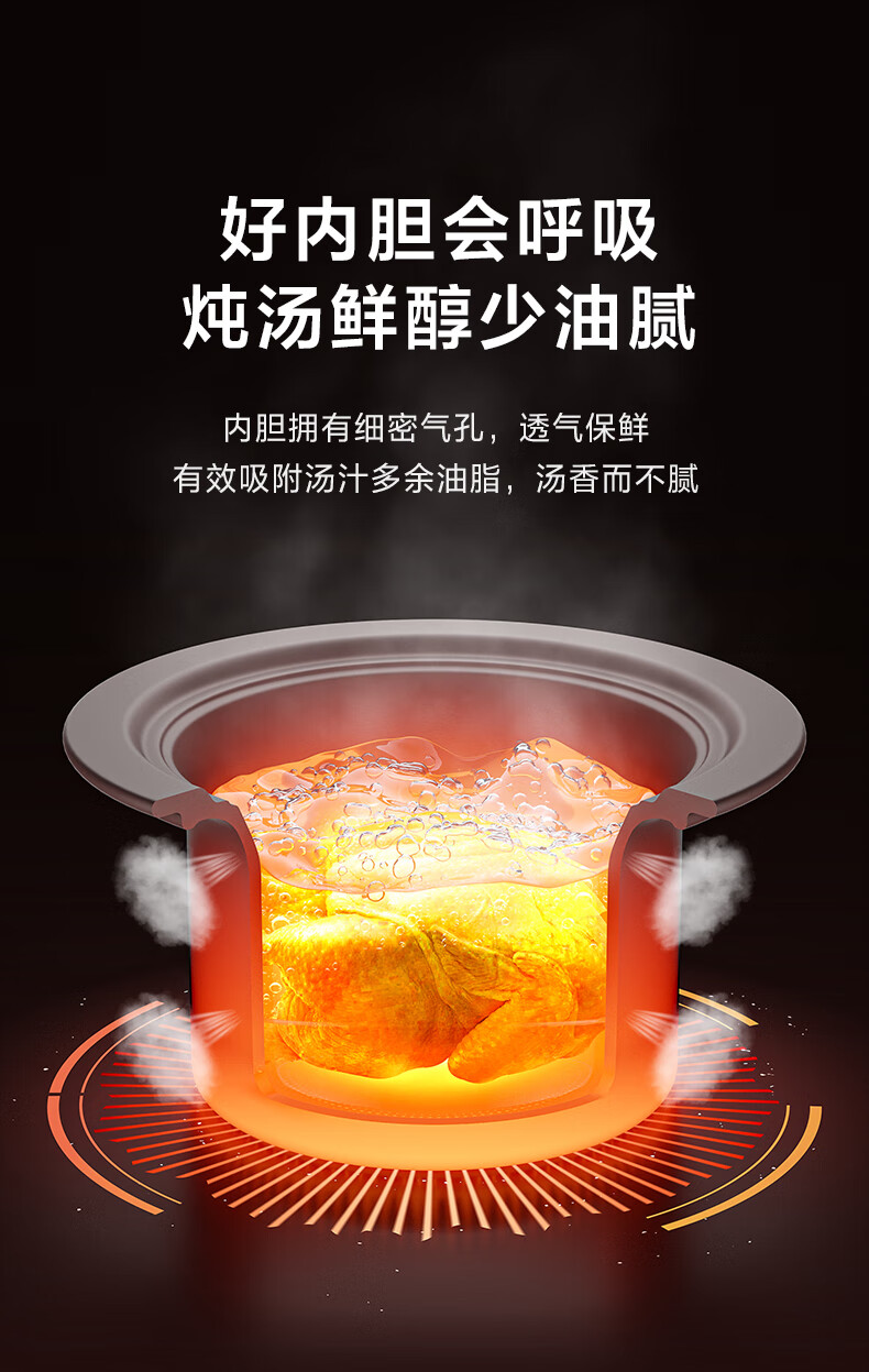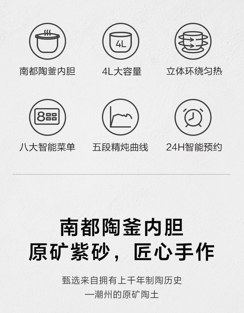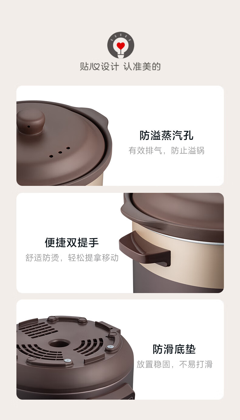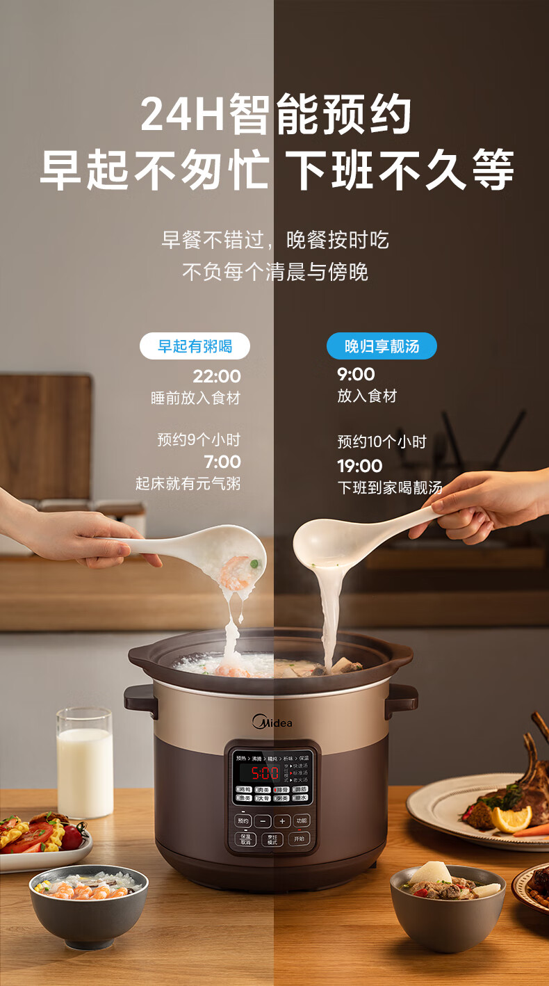 美的(Midea)电炖锅电炖盅养生锅4L大容量南都陶釜内胆陶瓷煲汤煮粥电砂锅家用预约全自动WTGS401