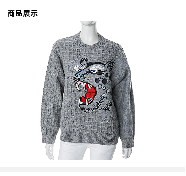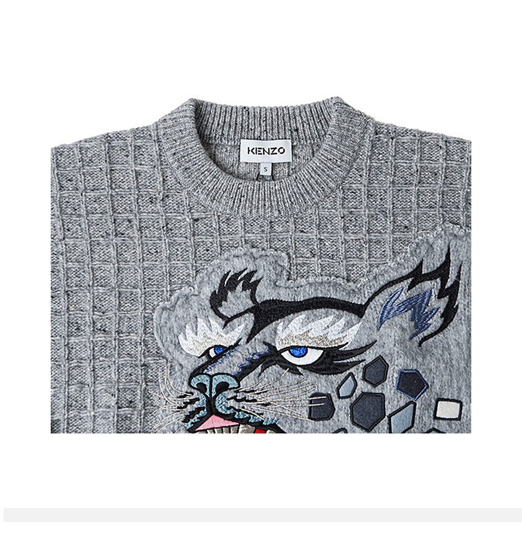 KENZO 高田贤三 女士大豹头毛衣 灰色 FB52 PU542 3AE 95