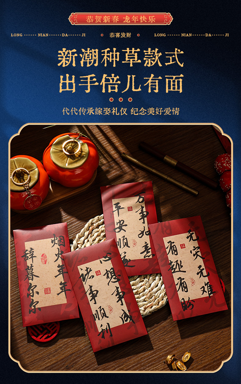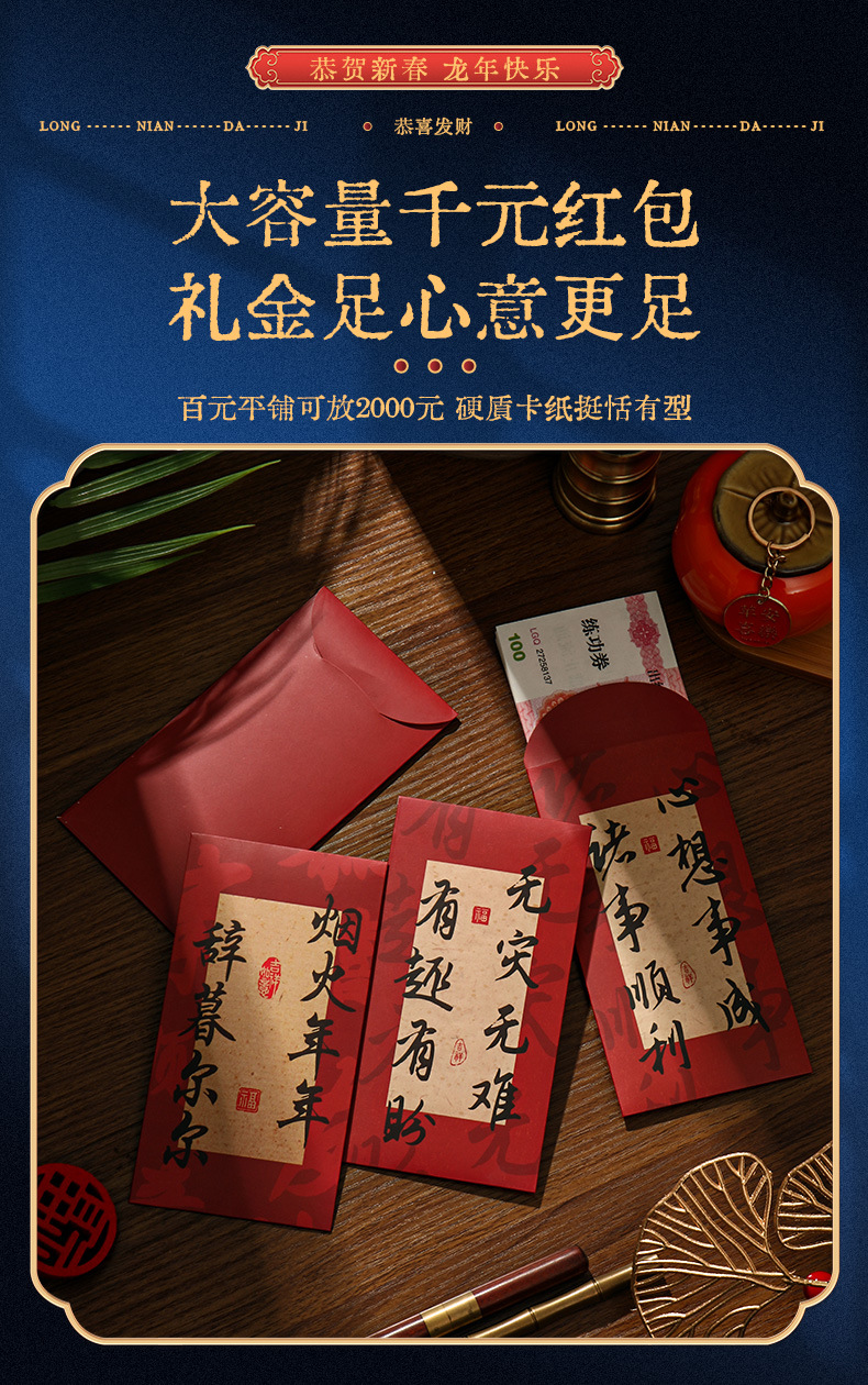 【9.9元18个书法红包】新年红包利是封 大吉大利春节过年 中式书法压岁钱
