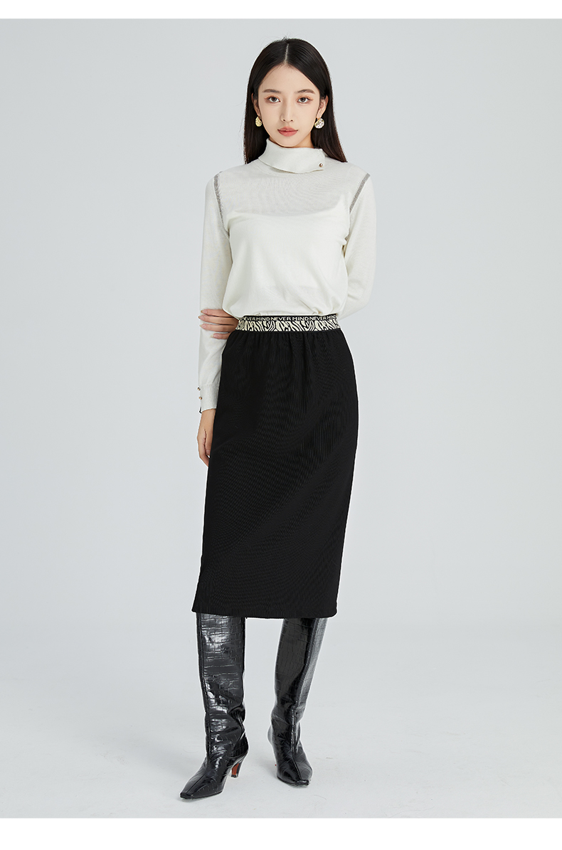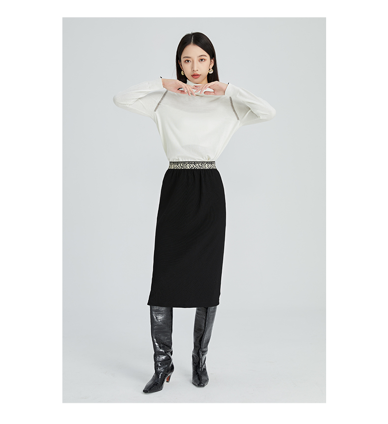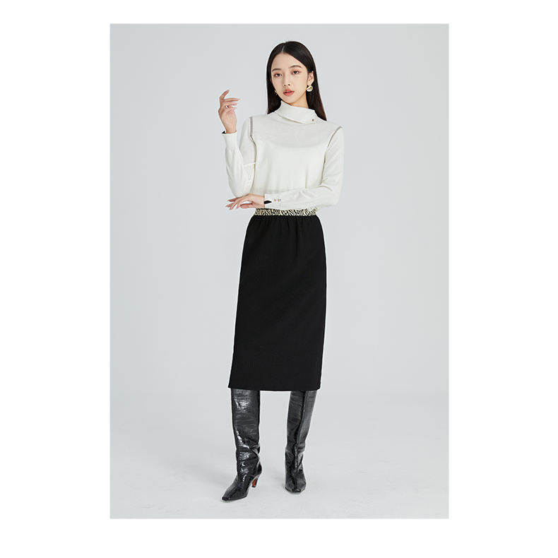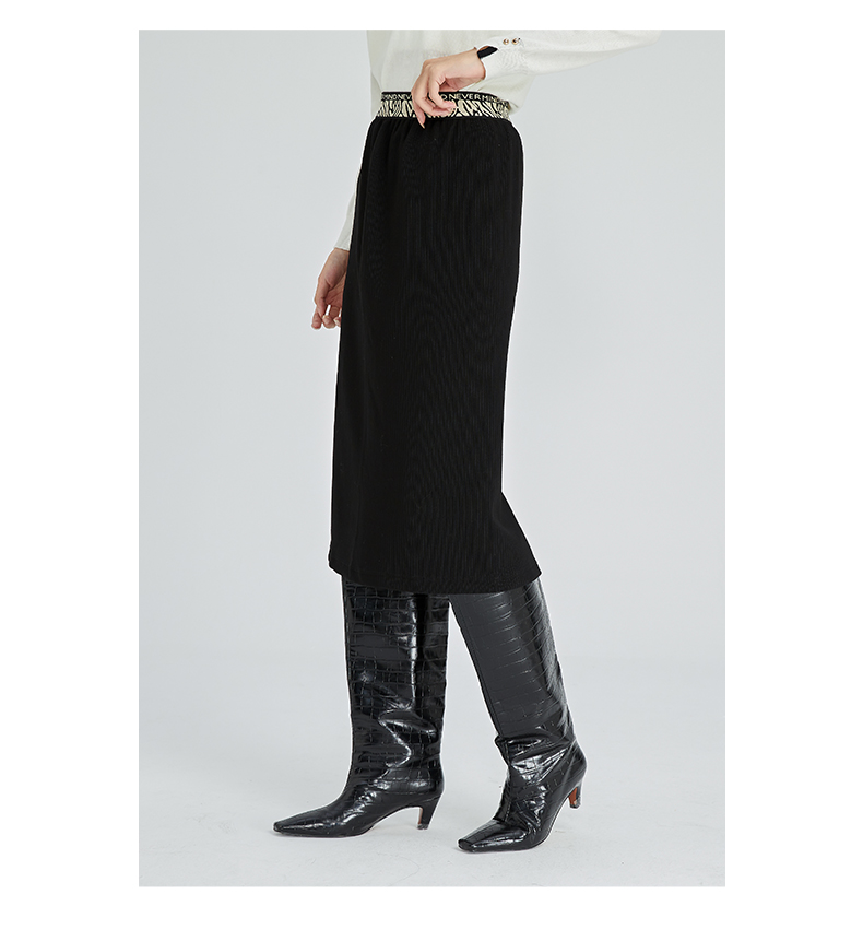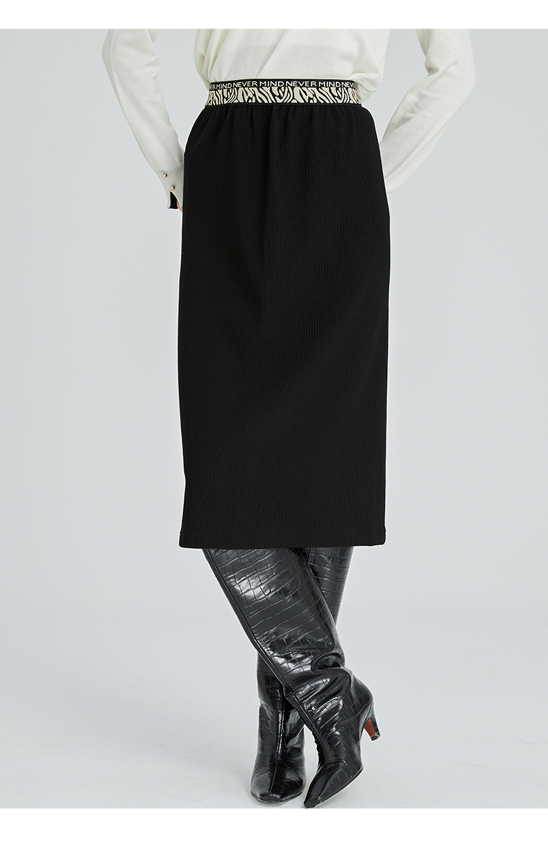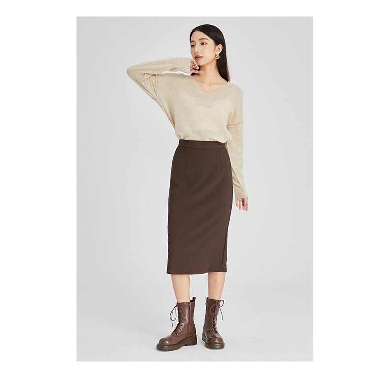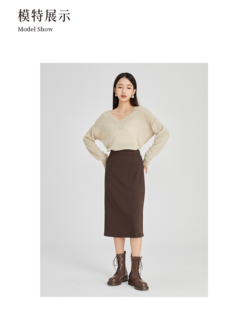 oldcolour2022冬季新款复古高腰直筒显瘦包臀中长款针织半身裙女
