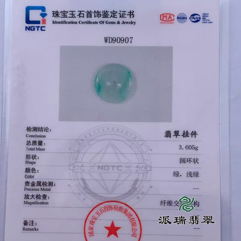 派瑞翡翠 18k金翡翠吊坠 冰种 满绿