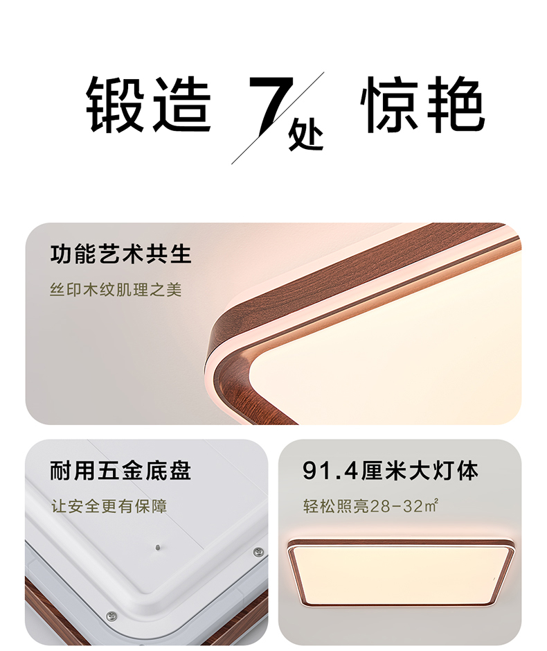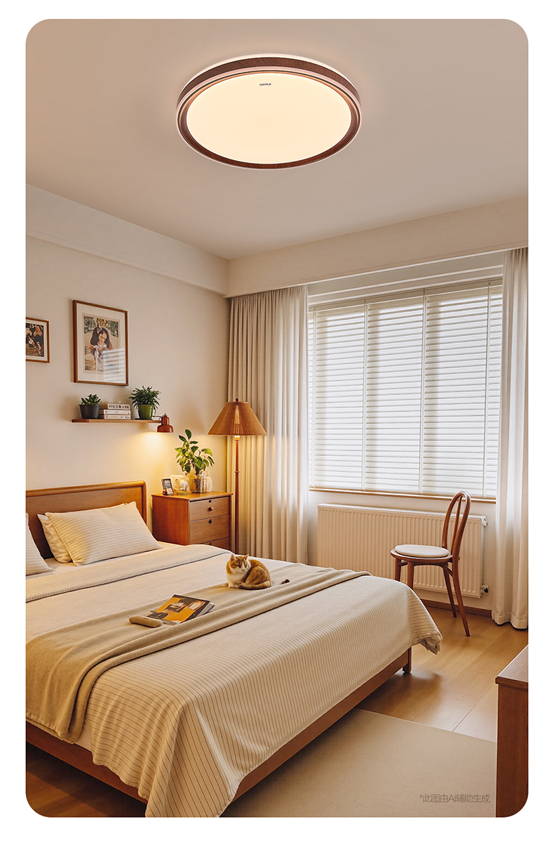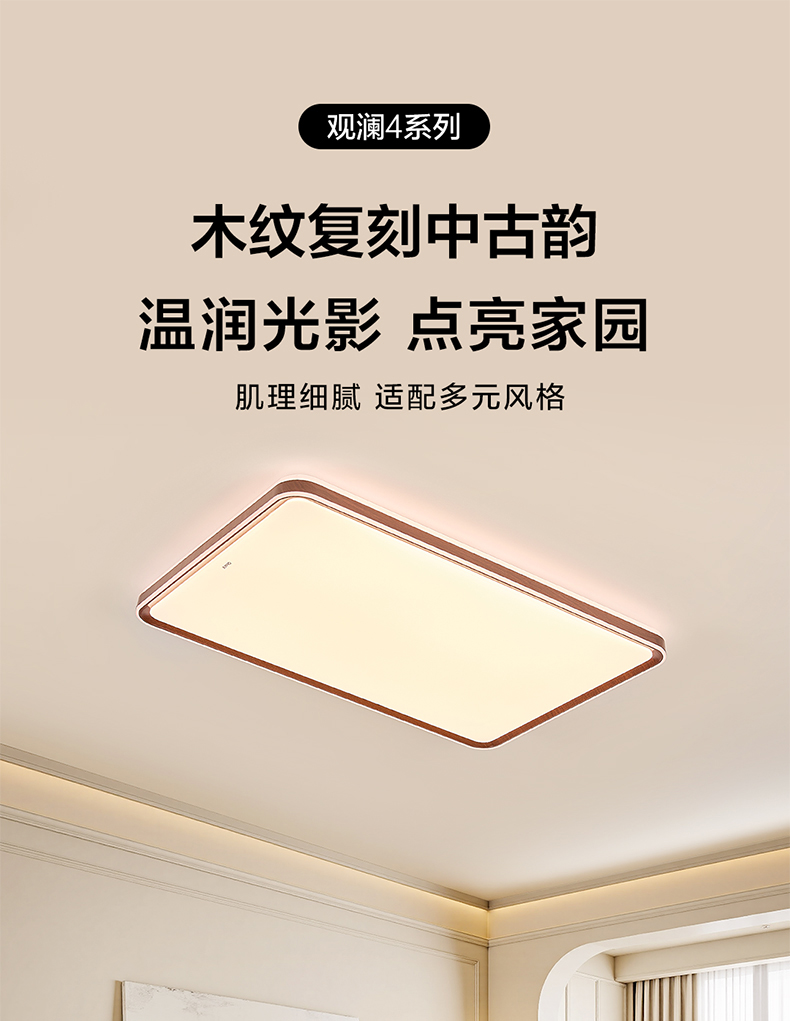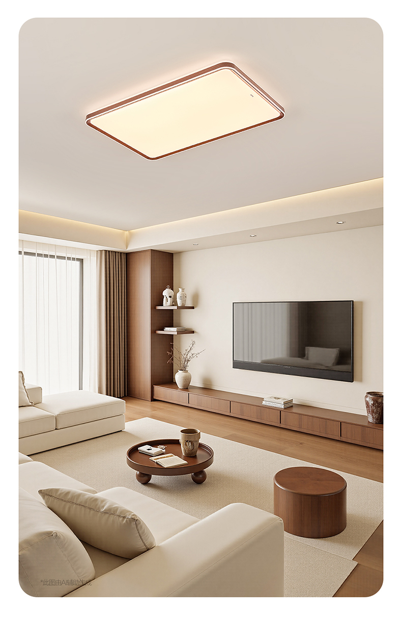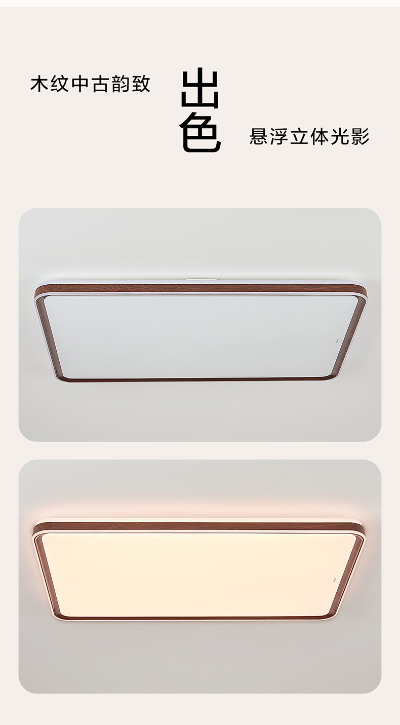 欧普(OPPLE)观澜·25新led全光谱护眼客厅吸顶灯原木风创意胡桃色极简新中式灯具